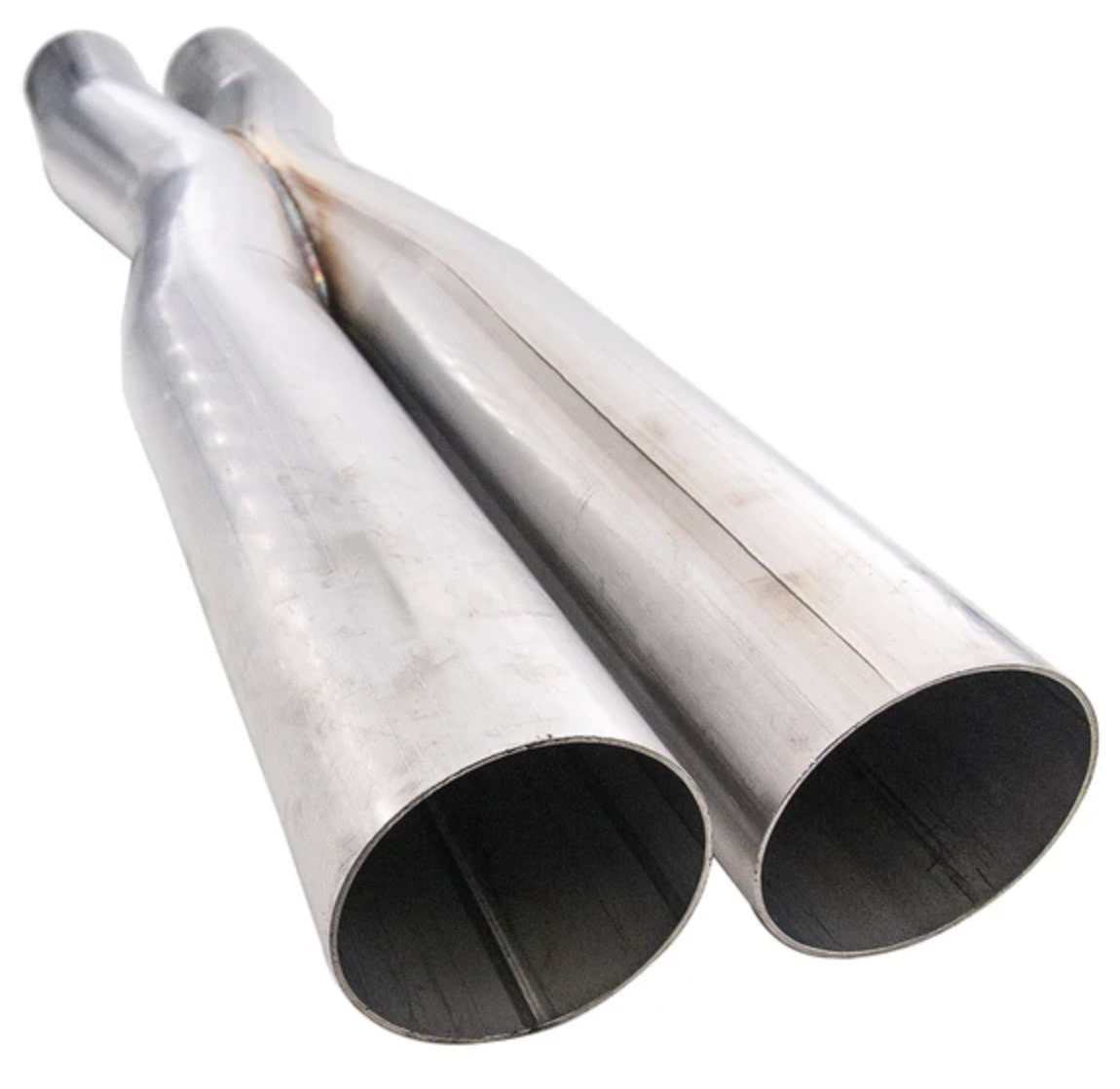When building out your custom exhaust, Khaos Motorsports has you covered. This x-pipe was specifically designed as a component of our cat back exhaust system. Mandrel bent from 304 Stainless Steel this x-pipe will out perform any stamped x-pipe you put against it! We even took it a step further by running it through our CNC mill for the center cuts to ensure they are perfect every time. This is one part you will never have to worry about once it's installed! If you have any questions about this item or any of our others, do not hesitate to reach out to us.
