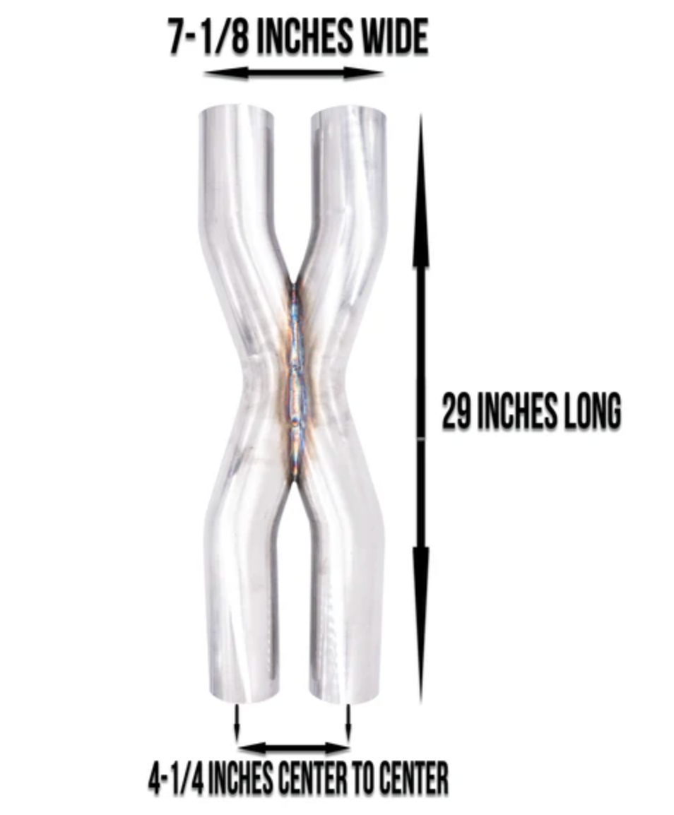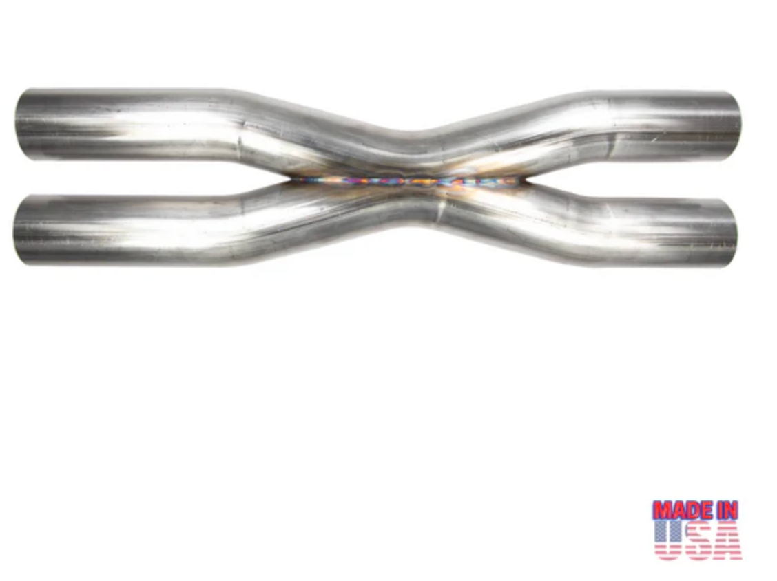 Both streams keep each other up to speed, which draws even more spent exhaust out the cylinders. Khaos Motorsports X-pipes provide a boost in horsepower and a higher tone akin to an exotic car.