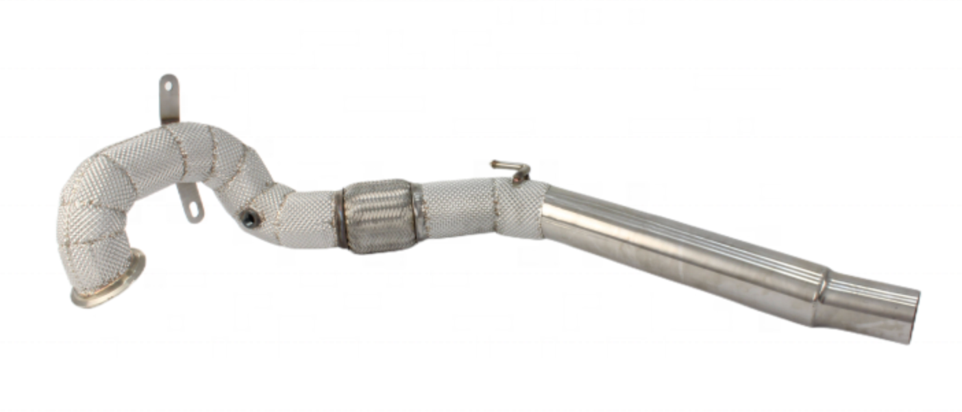 Crafted from 304 grade premium stainless this exhaust downpipe offers advanced airflow and performance gains over the factory catalytic converter. Manufactured using the latest in TIG welding technology, this exhaust catalytic converter is certified for EPA emission inspection. The substrate material is composed of a standard 200 cell count. This unit also includes a durable heat wrap layer to protection against engine heat exposure.