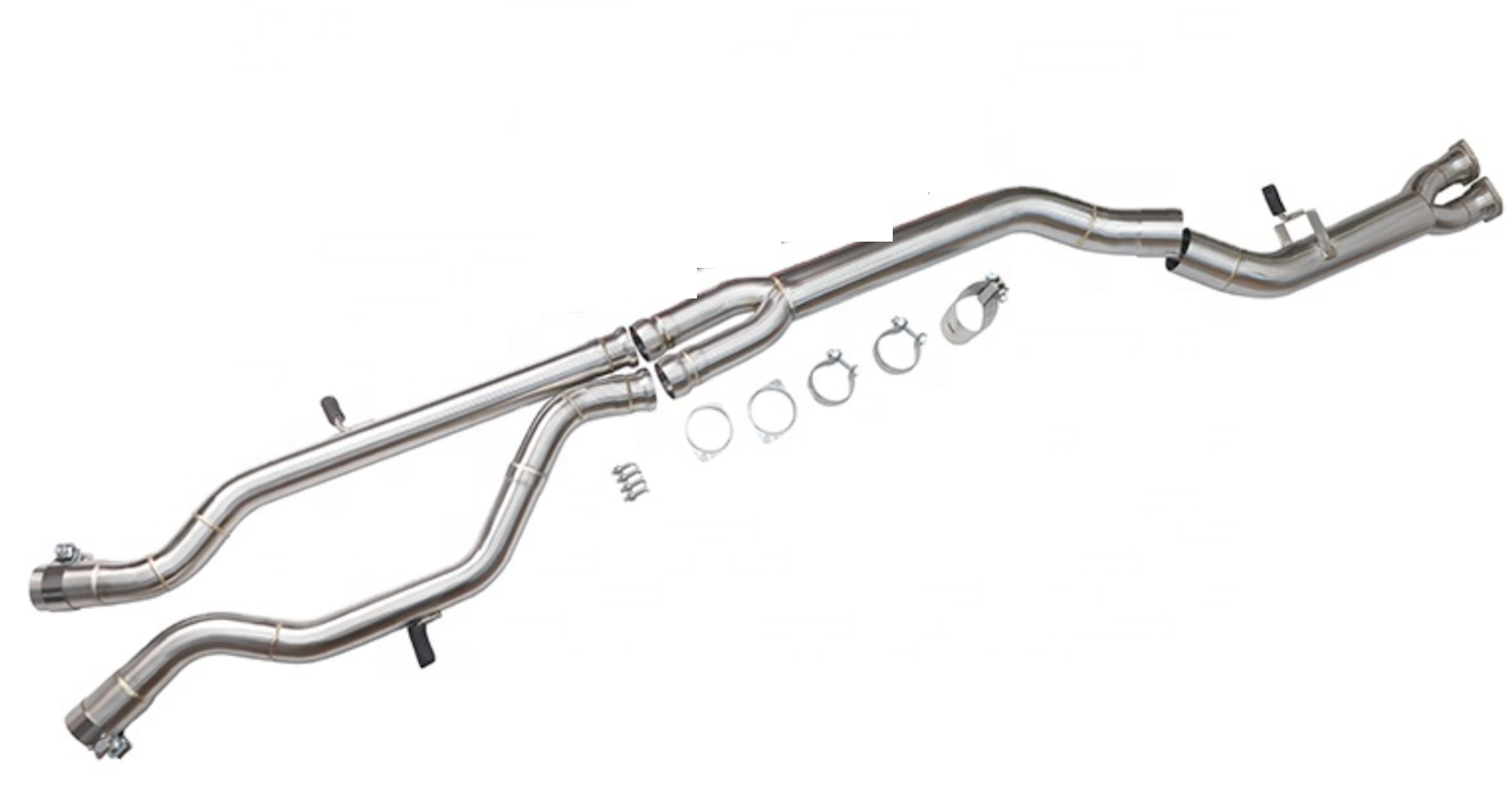 Crafted from 304 grade premium stainless this exhaust mid-pipe set offers advanced airflow and performance gains over the factory setup. Manufactured using the latest in TIG welding technology, this mid-pipe set deletes the restrictive catalysts delivering an average power increase of 25+ HP.