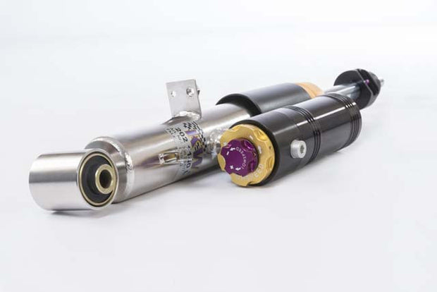 Using the Nordschleife as the testing grounds and data collected from our KW 7-post Driving Dynamic Test Center, KW developed it's 3-way Clubsport coilover kit. Wheel loads, vehicle weight and chassis reinforcements (increased body stiffness) can all be taken into consideration with the TVR-A & TVCLH-A valve technology and adjustment capabilities of the 3-way Clubsport. Similar to KW Competition 3-way coilovers, low-speed and high-speed compression adjustment is achieved by utilizing with the controls on the external reservoir.