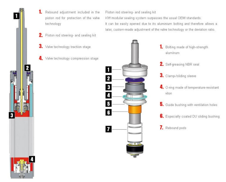 - KW coilover struts "inox-line" Variant 1, 2 and 3