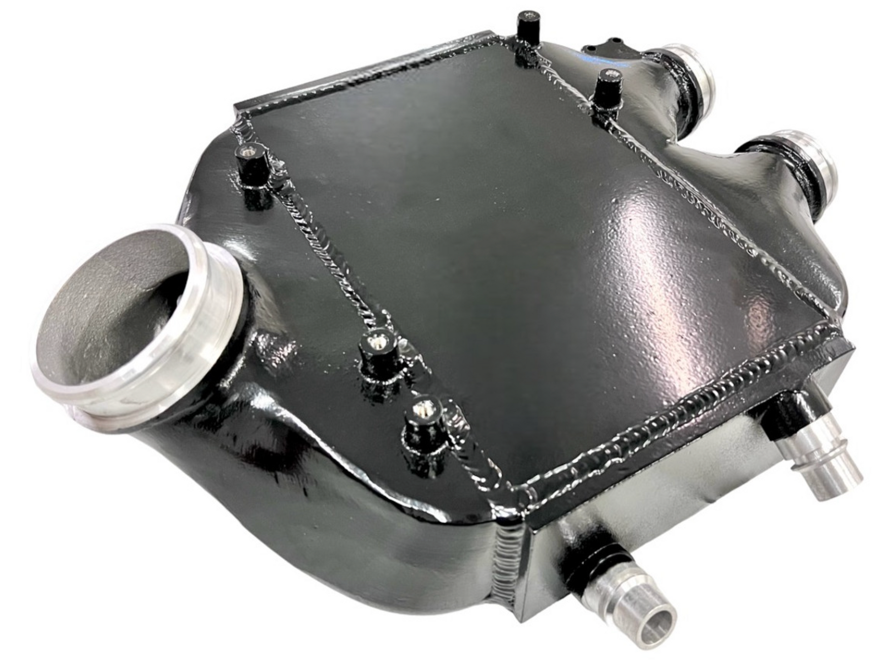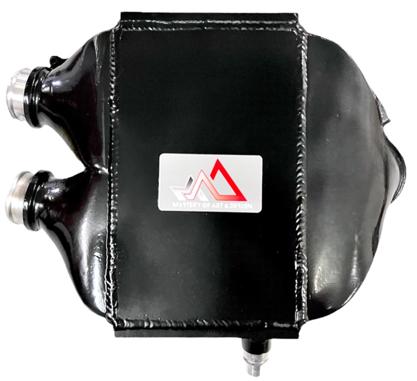 In addition to its performance benefits, the Mad Top Mount Intercooler is also a visual upgrade. Its sleek, black finish and laser-etched plaque add a stylish touch to your engine bay.