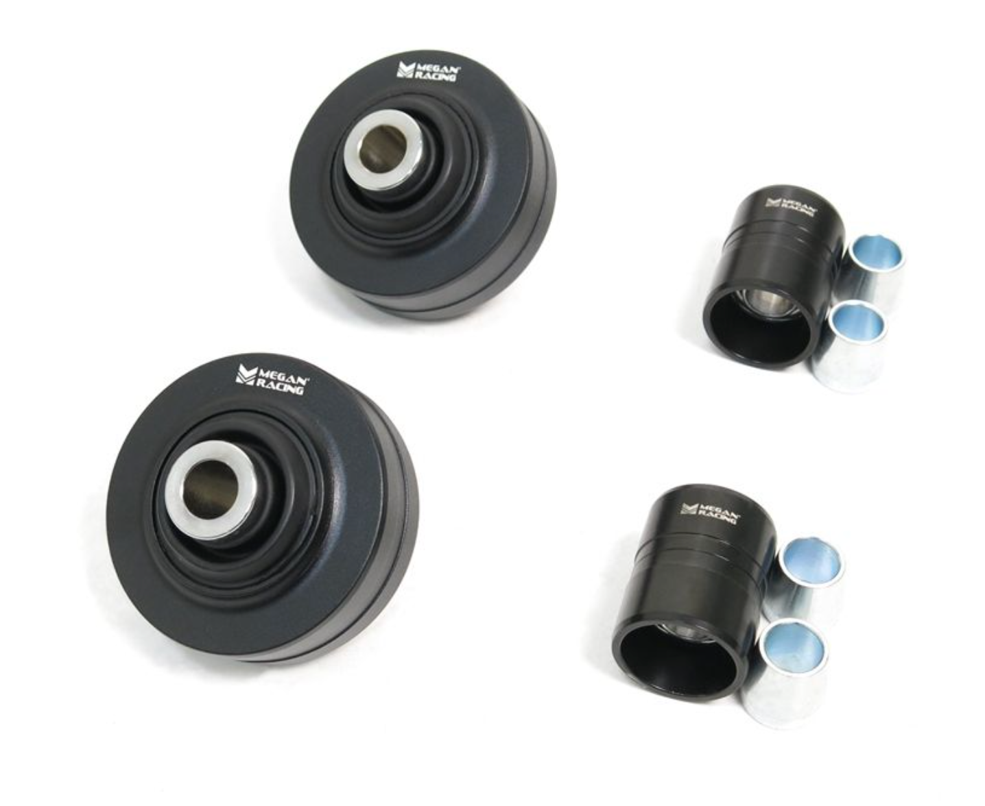 Spherical bushings provide freedom of movement free of bind while eliminating all slop unlike factory molded rubber bushings which will not only increase vehicle dynamic response but also allow the suspension to absorb more road forces. All hardware is treated and incorporate dustboots to help prevent corrosion with during the harshest weather conditions and like all Megan Racing products are protected with a 1-year warranty against manufacturer defects.
