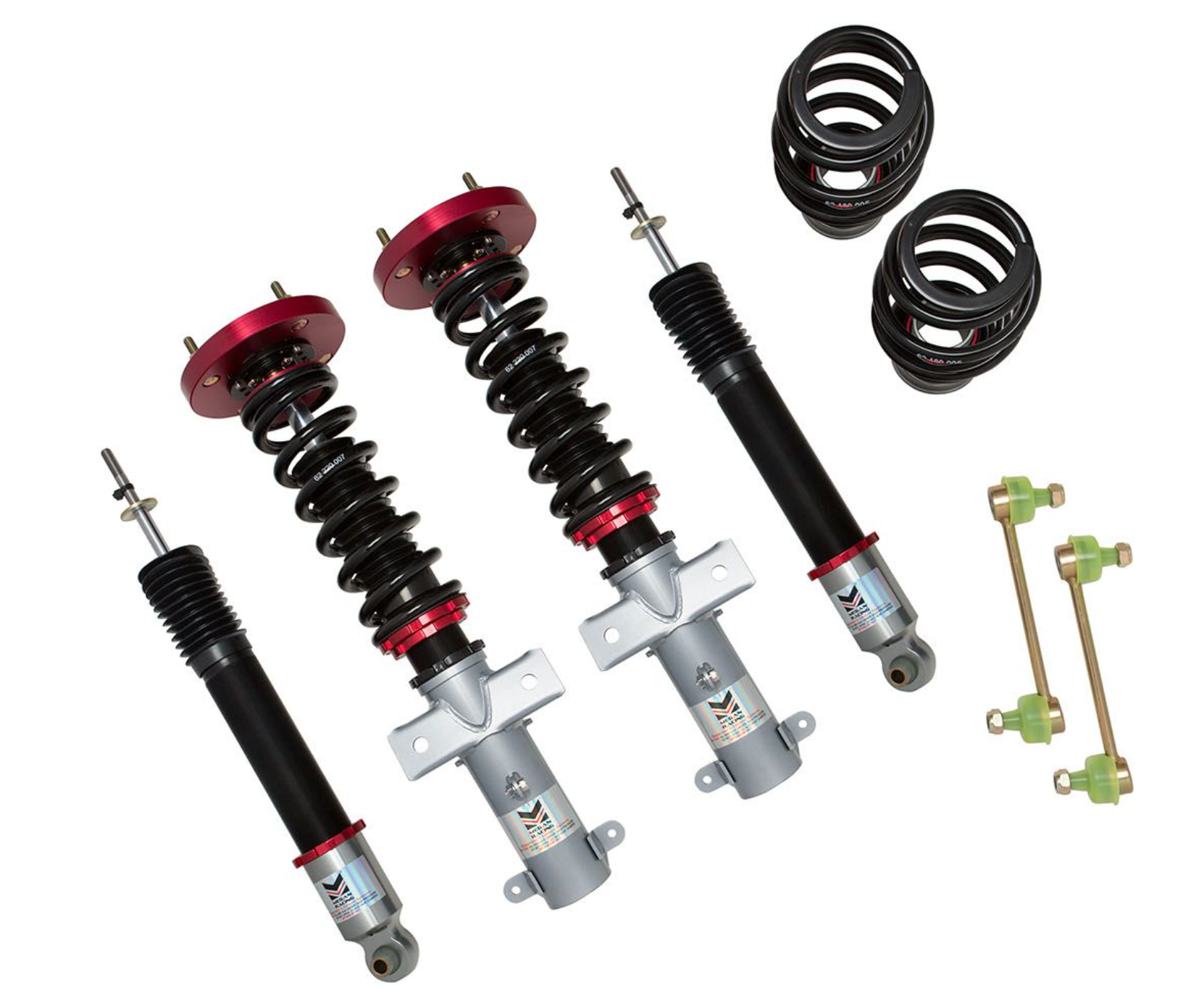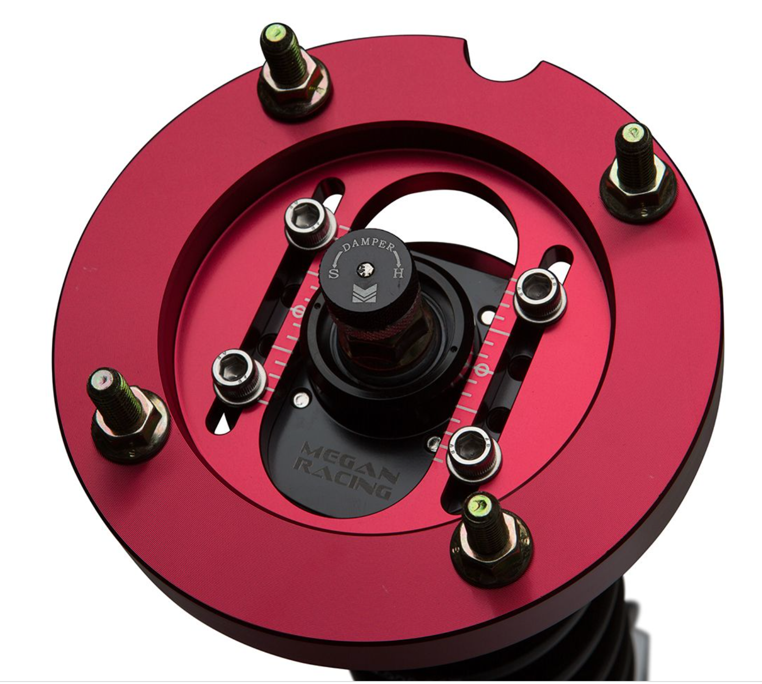 Megan Racing Coil Over Dampers are the ultimate upgrade to your track or street car. Featuring 32 levels of damper force adjustment, camber adjustable pillowball front top mounts and shock length adjustment allowing you to retain full suspension stroke and to fine tune your suspension characteristics. Compression and rebound settings are easily adjusted through a single damper adjustment knob which is built-in at the top of the damper mount for easy access. Adjustments are simple to tune according to your style of driving and desired comfort level whether you are a professional certified mechanic or an automotive enthusiast with amateur mechanical skills.