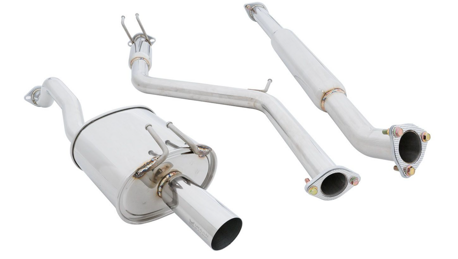 Megan Racing OE-RS series exhaust system are based on factory style, with bigger piping, OEM style polished mufflers and quiet sound. The exhaust system is made stainless steel. All piping are mandrel bent with a high polished finish. Exhaust system comes with all the necessary hardware needed for a direct bolt on installation.