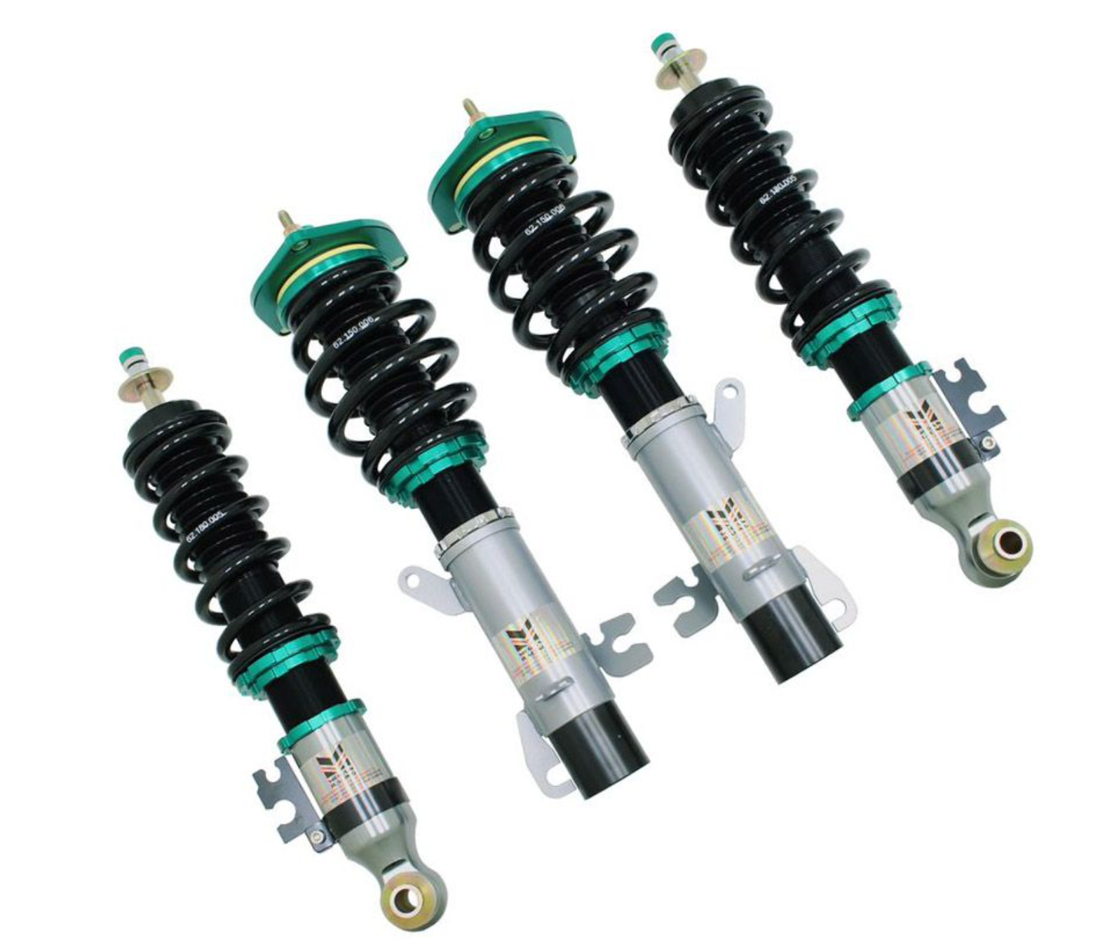 Megan Racing EU Series Suspension Systems are fully adjustable coilover systems which do not break the bank. With it's full length adjustable design, the vehicle's ride height can be adjusted without affecting the shock stroke ensuring a retained ride quality at nearly any height. Monotube internal shock construction separates the oil and hi pressured Nitrogen gas chamber preventing aeration. This allows for immediate shock response and damping consistency. 30-click damping force adjustability will also allow the user to fine tune the ride stiffness and response to his or her preference.