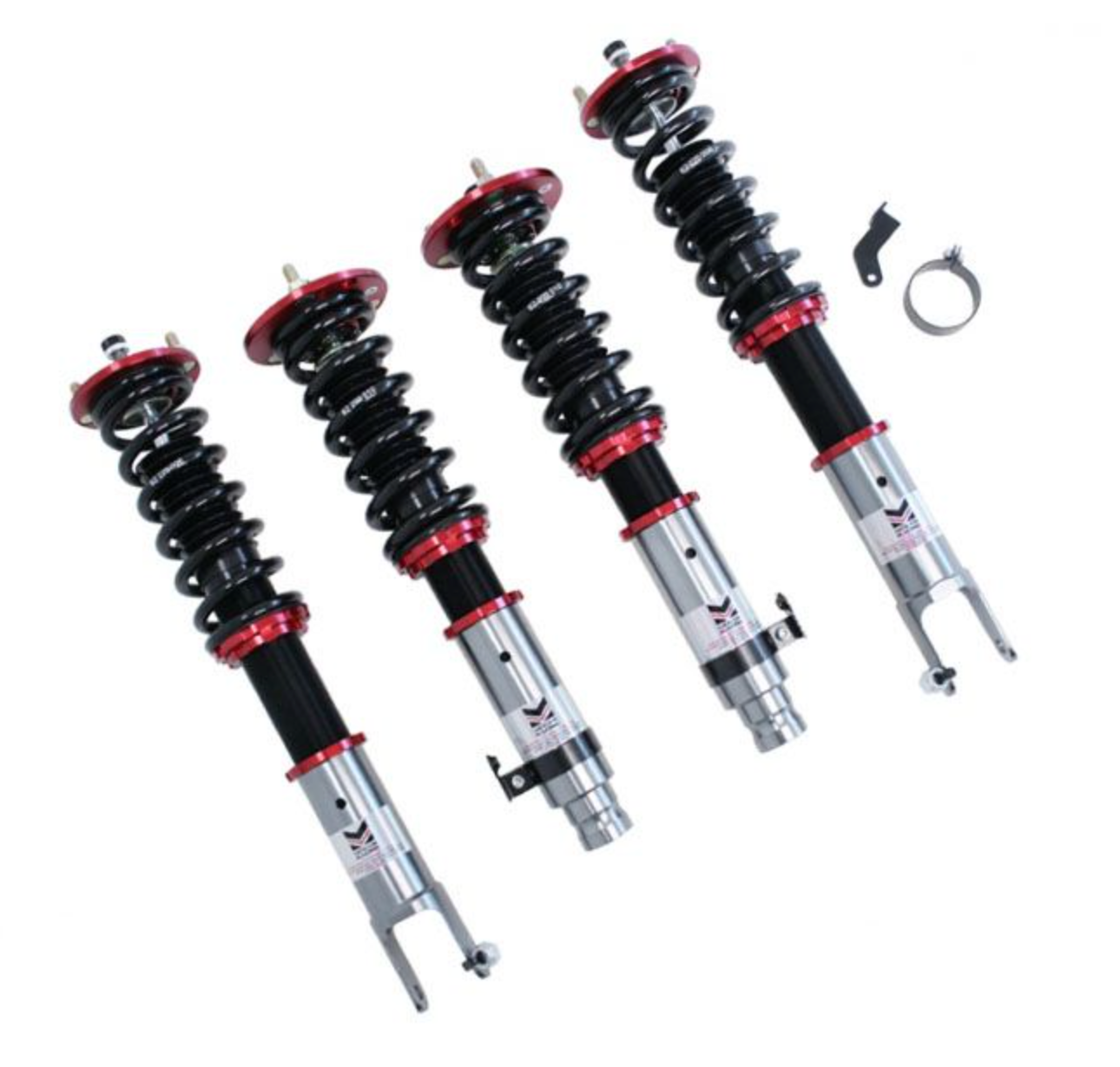 Megan Racing Coil Over Dampers are the ultimate upgrade to your track or street car. Featuring 32 levels of damper force adjustment and shock length adjustment allowing you to retain full suspension stroke and to fine tune your suspension characteristics. Compression and rebound settings are easily adjusted through a single damper adjustment knob which is built-in at the top of the damper mount for easy access. Adjustments are simple to tune according to your style of driving and desired comfort level whether you are a professional certified mechanic or an automotive enthusiast with amateur mechanical skills.