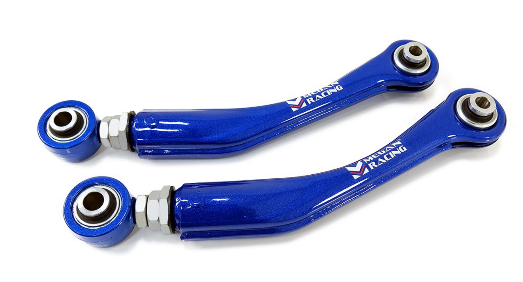 With it's stamped steel construction and spherical bushings, our camber arm for the Hyundai Genesis Coupe is a great improvement over the OE components. Spherical bushings allow for increased response over the soft rubber bushings while allowing for bind-free movement. Reverse threaded turnbuckles also allow for hassle-free adjustment and like all Megan Racing components, they are protected with a 1-year warranty against manufacturer defects.