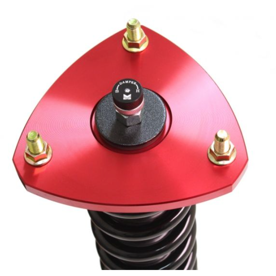 Megan Racing Coil Over Dampers are the ultimate upgrade to your track or street car. Featuring 32 levels of damper force adjustment and shock length adjustment allowing you to retain full suspension stroke and to fine tune your suspension characteristics. Compression and rebound settings are easily adjusted through a single damper adjustment knob which is built-in at the top of the damper mount for easy access. Adjustments are simple to tune according to your style of driving and desired comfort level whether you are a professional certified mechanic or an automotive enthusiast with amateur mechanical skills.