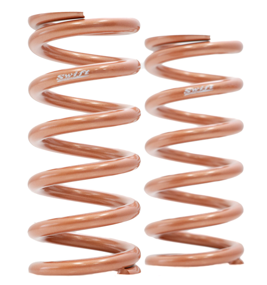 Swift's most popular product line is used in various professional-level motorsports. Made with Swift's proprietary H5S.TW spring material, it has the most linear spring rate compared to all other major brands. Features fewer coils, increased stroke range, and lighter weight. This spring increases handling performance, speeds up rebound, and provides more consistent and controlled weight transfer.