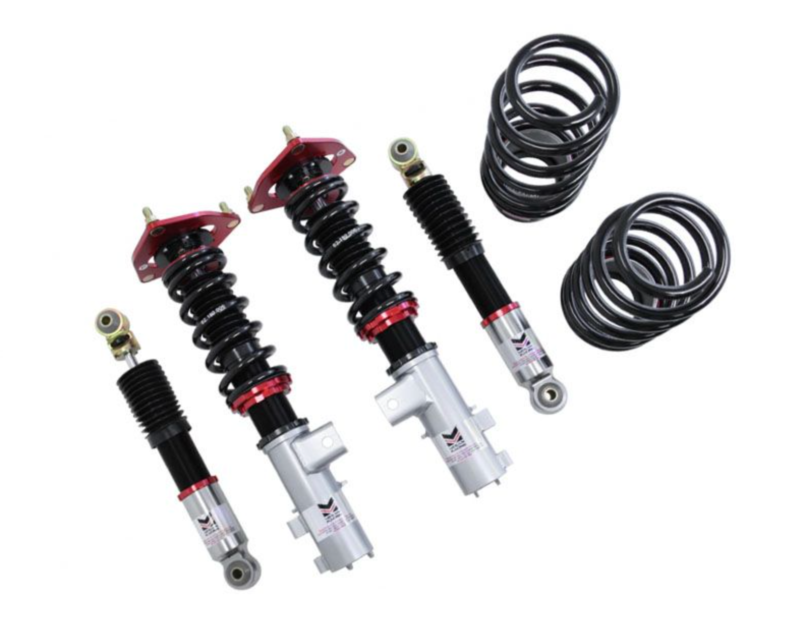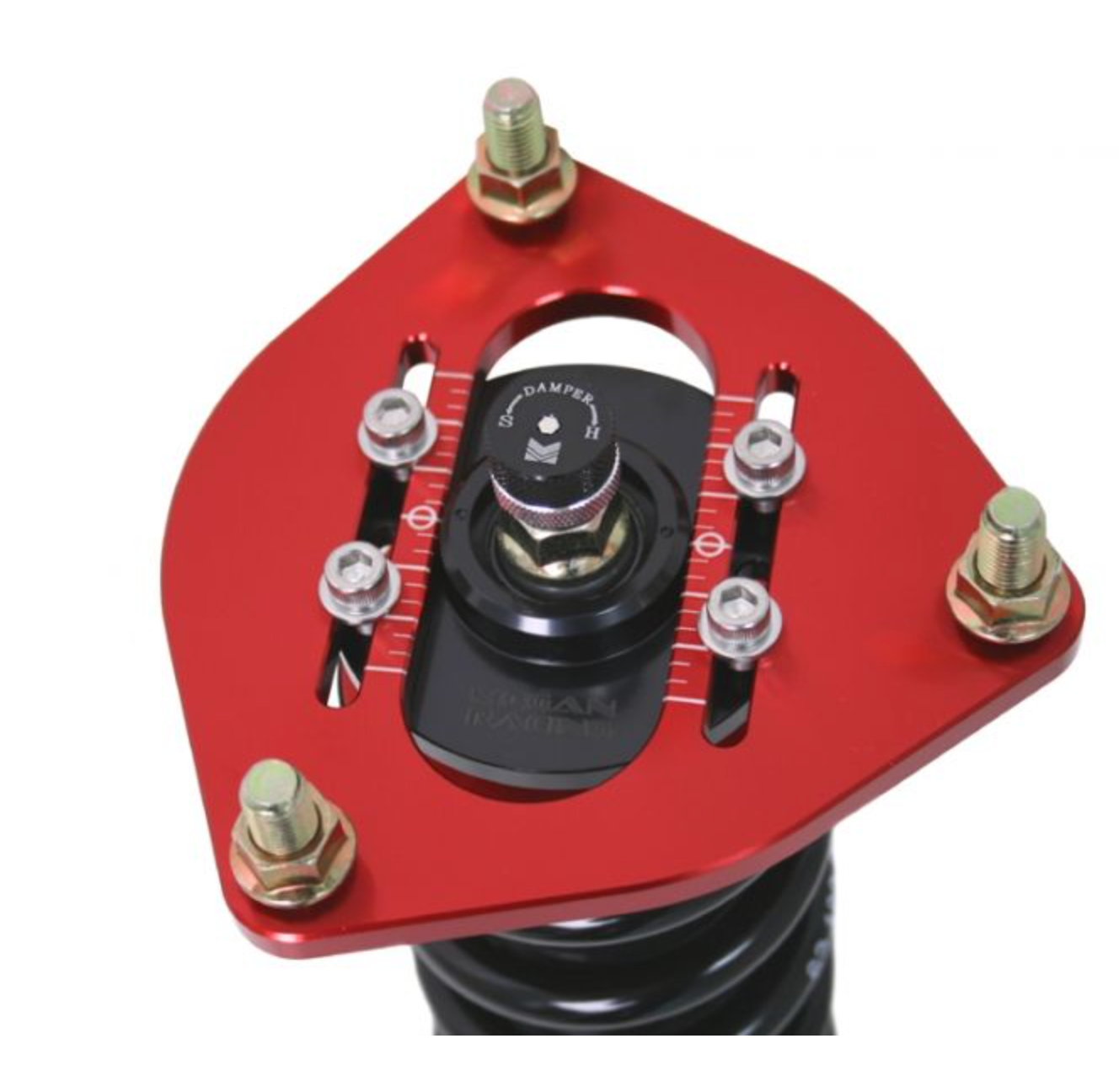 Megan Racing Coil Over Dampers are the ultimate upgrade to your track or street car. Featuring 32 levels of damper force adjustment, camber adjustable pillowball front top mounts and shock length adjustment allowing you to retain full suspension stroke and to fine tune your suspension characteristics. Compression and rebound settings are easily adjusted through a single damper adjustment knob which is built-in at the top of the damper mount for easy access. Adjustments are simple to tune according to your style of driving and desired comfort level whether you are a professional certified mechanic or an automotive enthusiast with amateur mechanical skills.