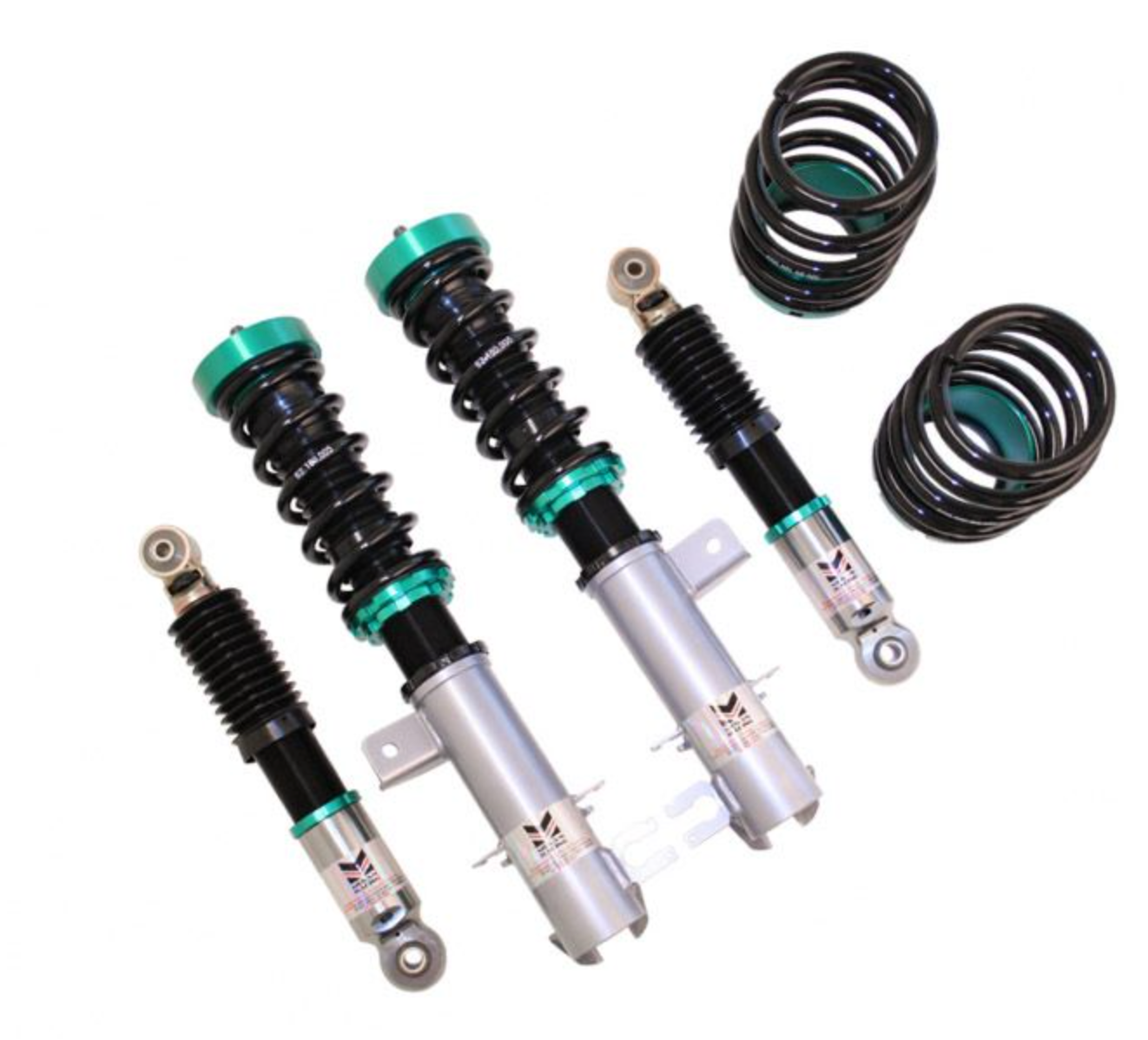 Megan Racing EU Series Suspension Systems are fully adjustable coilover systems which do not break the bank. With it's full length adjustable design, the vehicle's ride height can be adjusted without affecting the shock stroke ensuring a retained ride quality at nearly any height. Monotube internal shock construction separates the oil and hi pressured Nitrogen gas chamber preventing aeration. This allows for immediate shock response and damping consistency. 30-click damping force adjustability will also allow the user to fine tune the ride stiffness and response to his or her preference.