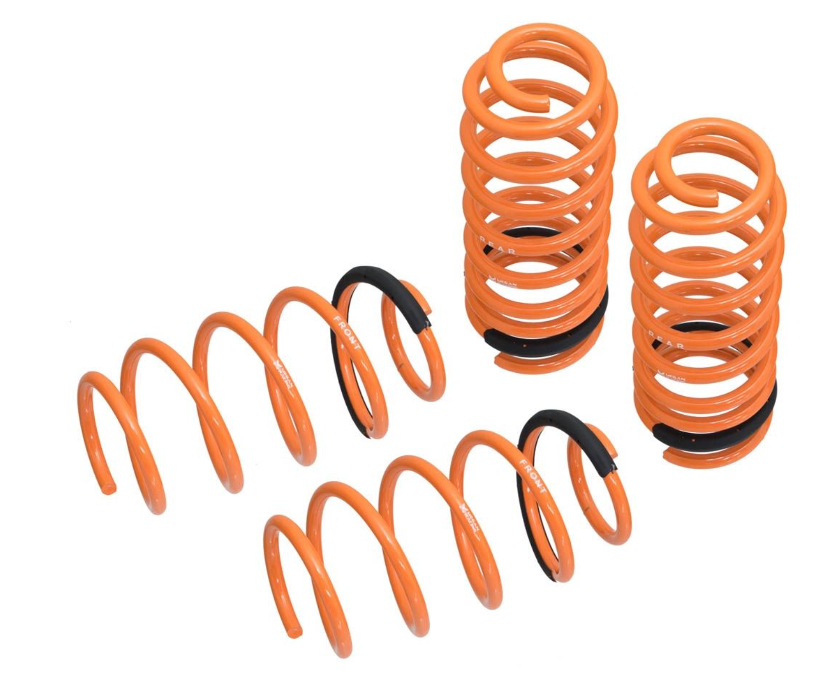 The result is a spring that specifically offers racecar handling, yet maintains smooth and comfortable ride characteristics. Carefully matched springs rates provide exceptional handling, response, control and balance. These springs offer a generous drop to your car while remaining very “streetable” by having enough clearance to avoid bottoming-out; and the lowered center of gravity improves performance and increases stability, as well as enhancing the appearance of the vehicle. (Note: Spring rates and drop amount vary by different vehicle application and chassis load.)