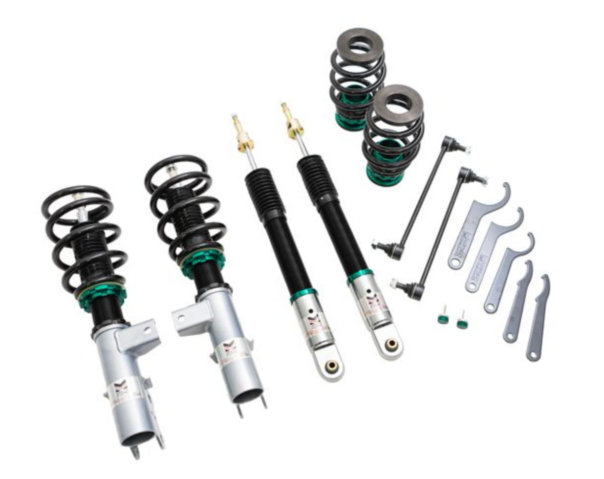 Megan Racing EU Series Suspension Systems are fully adjustable coilover systems which do not break the bank. With it's full length adjustable design, the vehicle's ride height can be adjusted without affecting the shock stroke ensuring a retained ride quality at nearly any height. Monotube internal shock construction separates the oil and hi pressured Nitrogen gas chamber preventing aeration. This allows for immediate shock response and damping consistency. 30-click damping force adjustability will also allow the user to fine tune the ride stiffness and response to his or her preference.