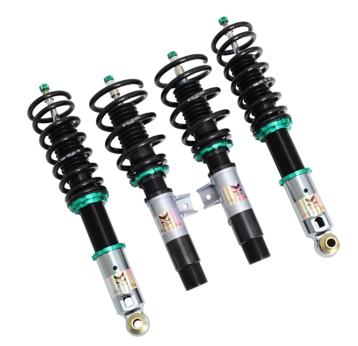 Megan Racing EU Series Suspension Systems are fully adjustable coilover systems which do not break the bank. With it's full length adjustable design, the vehicle's ride height can be adjusted without affecting the shock stroke ensuring a retained ride quality at nearly any height. Monotube internal shock construction separates the oil and hi pressured Nitrogen gas chamber preventing aeration. This allows for immediate shock response and damping consistency. 32-click damping force adjustability will also allow the user to fine tune the ride stiffness and response to his or her preference.