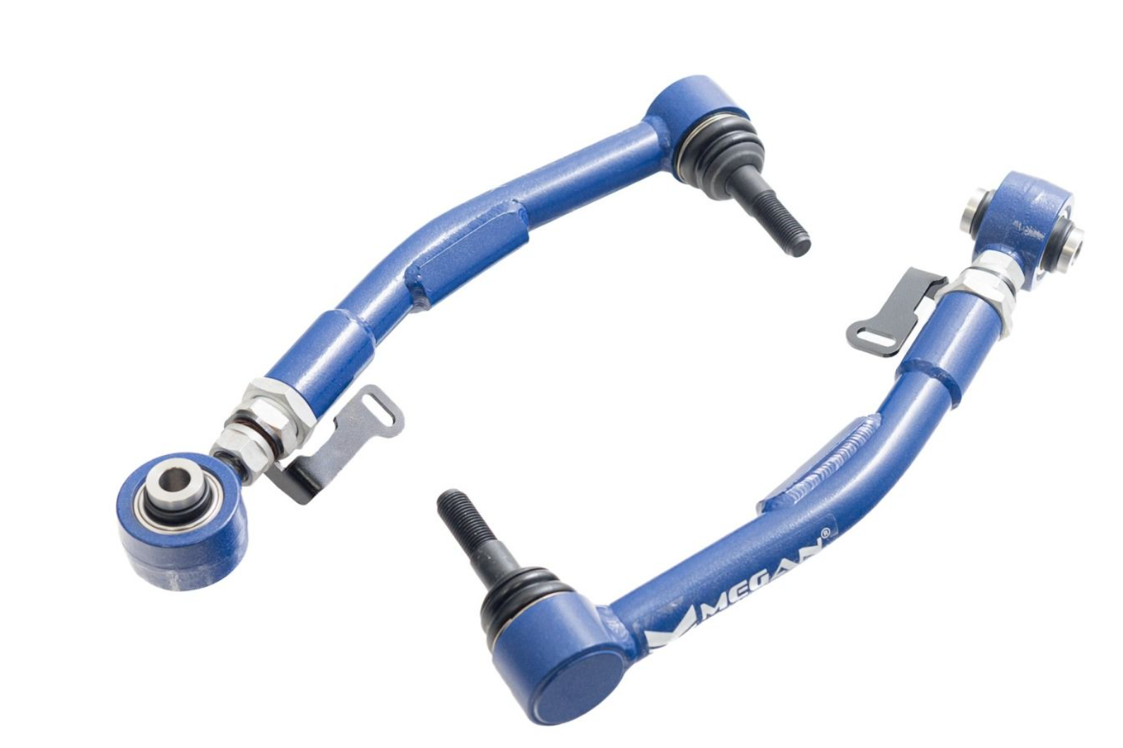 Megan Racing control arms are constructed of a Lightweight Steel-Alloy which is able to withstand the stresses of extreme competition these arms are powder coated with a 3-Stage process to ensure durability and protection against the elements. Spherical bushings provide freedom of movement free of bind while eliminating all slop unlike factory molded rubber bushings which will not only increase vehicle dynamic response but also allow the suspension to absorb more road forces. All hardware is treated to help prevent corrosion during the harshest weather conditions and are protected with a 1-year warranty against manufacturer defects.