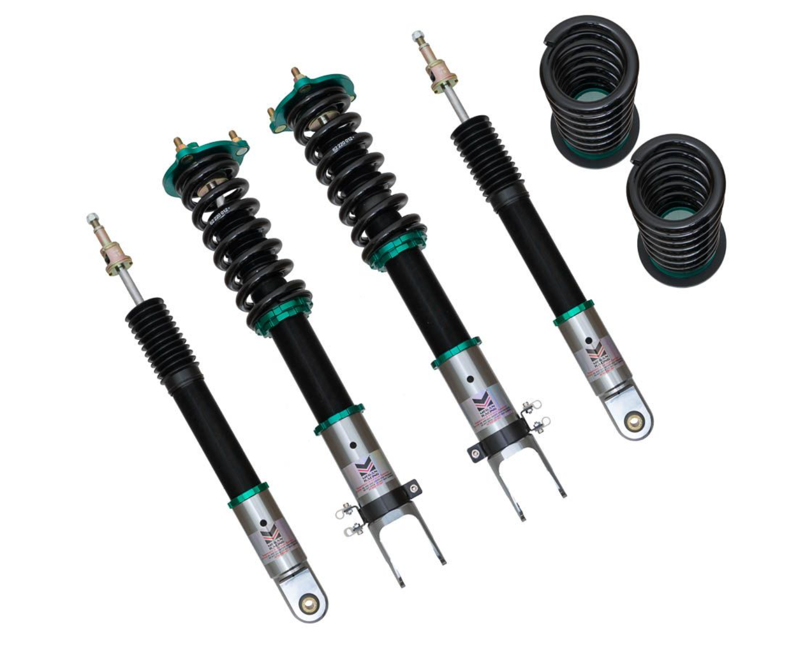 Megan Racing EU Series Suspension Systems are fully adjustable coilover systems which do not break the bank. With it's full length adjustable design, the vehicle's ride height can be adjusted without affecting the shock stroke ensuring a retained ride quality at nearly any height. Monotube internal shock construction separates the oil and hi pressured Nitrogen gas chamber preventing aeration. This allows for immediate shock response and damping consistency. 30-click damping force adjustability will also allow the user to fine tune the ride stiffness and response to his or her preference.