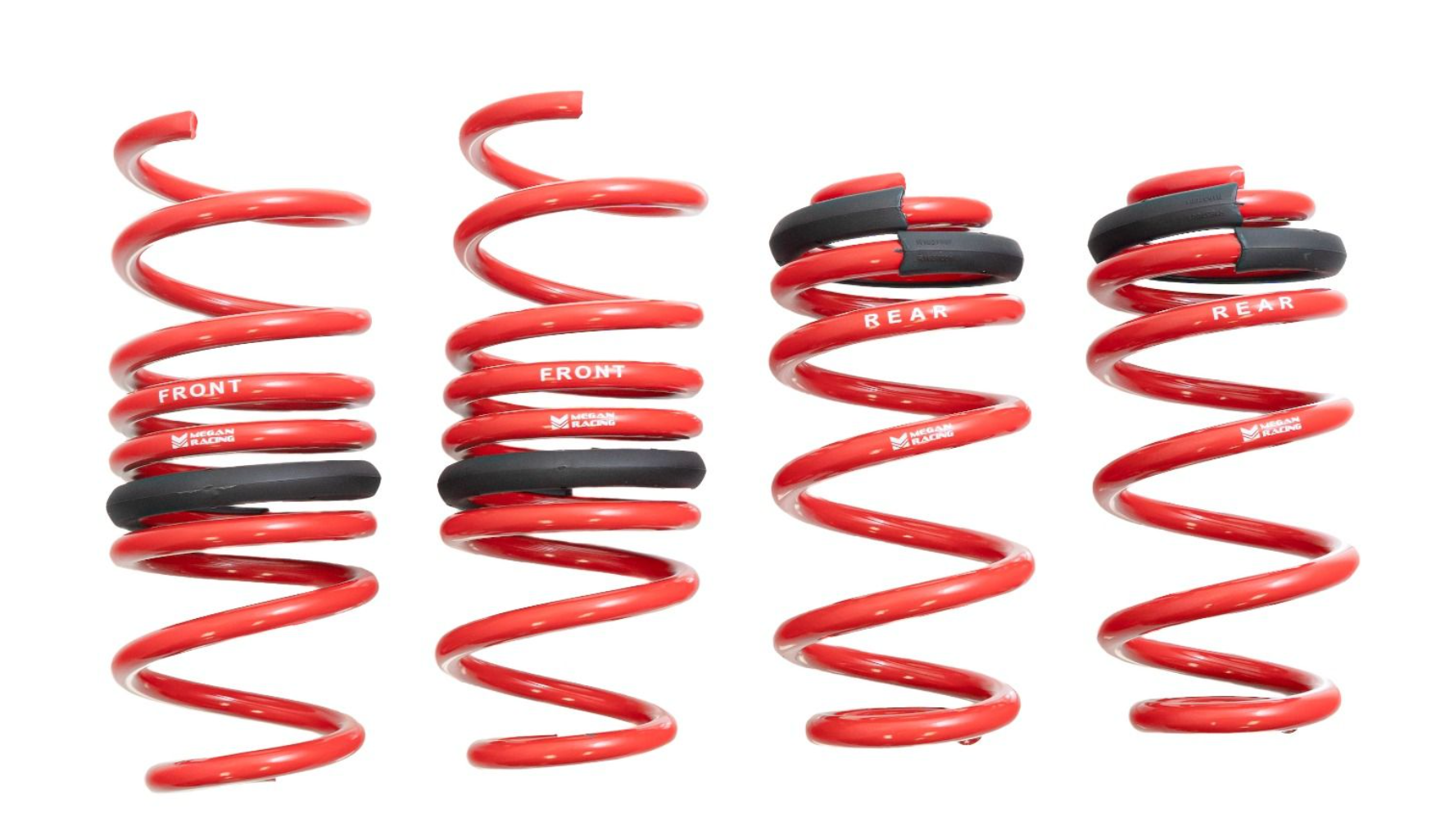 Megan Racing lowering springs are constructed of SAE 9254 Cold Wounded Steel under phosphate powder coating to deliver extremely durable coil springs resistant to premature “sagging”. The result is a spring that specifically offers improved handling with smooth and comfortable ride characteristics. (Note: Spring rates and drop amount vary by different vehicle application and chassis load). All Megan Racing suspension components are protected by a 1-year manufacturer warranty against manufacturer defects.