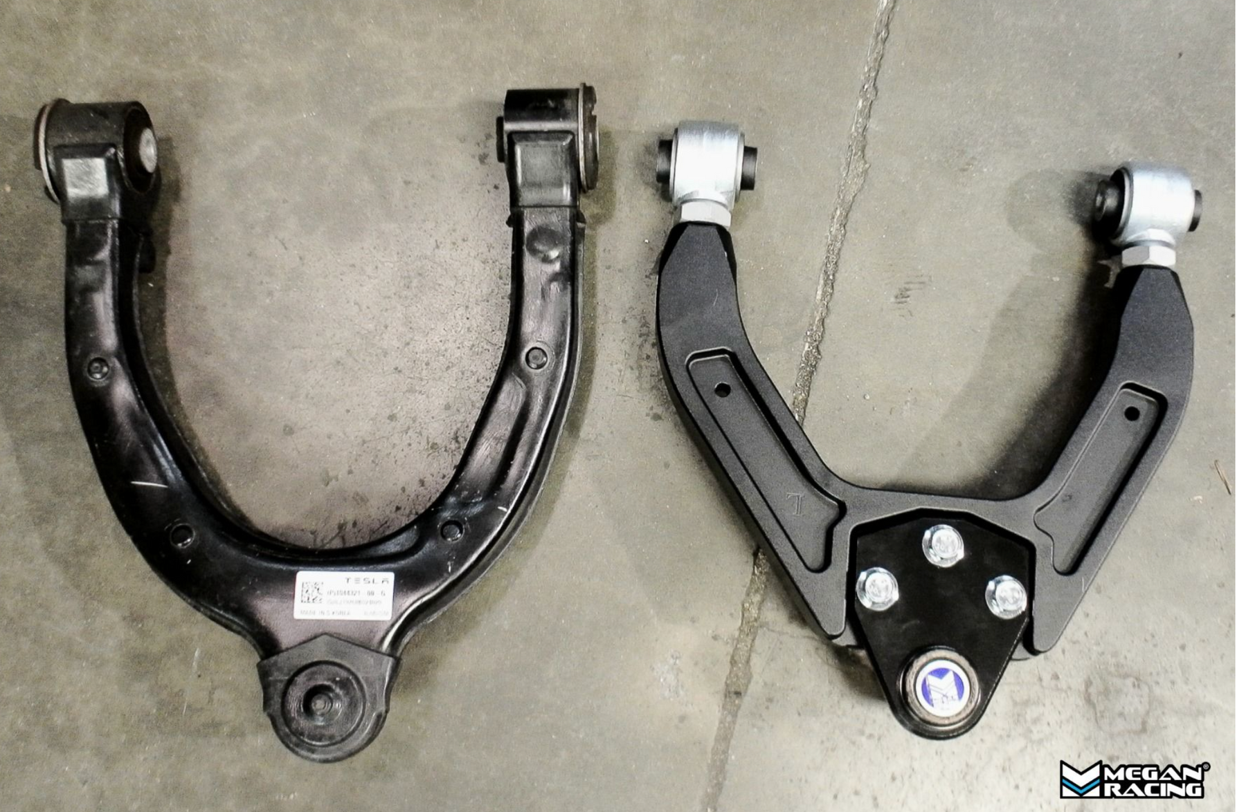 Our front upper control arms for the Tesla Model Y will allow users to fine tune their front alignment angles in order to get the best performance out of their tires or as a final touch when dialing in tight wheel fitments. Adjusting the bushing lengths allow for camber and caster angle changes while adjusting just the ball joint position will adjust camber angles only. Rubber bushings help minimize harsh NVH from reaching the cabin. All that paired to a lightweight aluminum body to help minimize overall weight and you have got yourself a great performance add-on to finish your set-up. All Megan Racing components are protected with a 1-year warranty against manufacturer defects.
