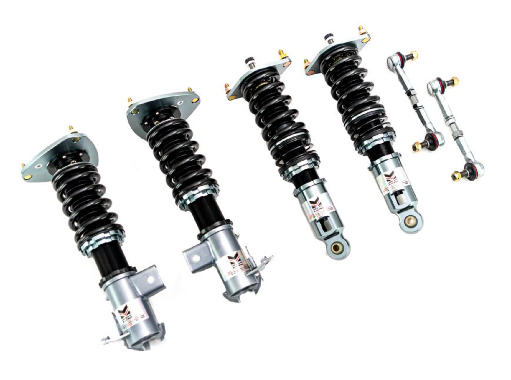 Height adjustments are made with separate CNC Machined locking spring perches for accuracy and smooth adjustment with separate damper shock length adjustment to retain full-stroke and allows for precision suspension tuning. The wide range of allowable ride height adjustment allows for a conservative drop to more aggressive ride heights for an aggressive stance, or to fine tune your suspension for the circuit to gain full potential of your vehicle's handling capabilities.