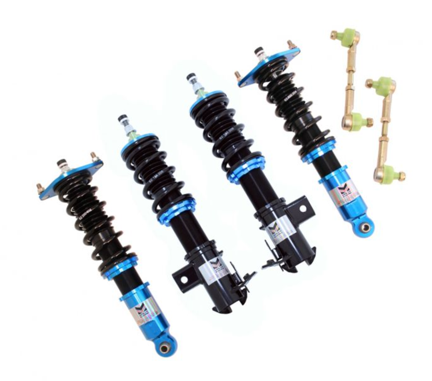 Megan Racing EZ Street suspension systems are fully adjustable coilover systems which do not break the bank. With it's full length adjustable design, the vehicle's ride height can be adjusted without affecting the shock stroke ensuring a retained ride quality at nearly any height. Monotube internal shock construction separates the oil and hi pressured Nitrogen gas chamber preventing aeration. This allows for immediate shock response and damping consistency. 15-click damping force adjustability will also allow the user to fine tune the ride stiffness and response to his or her preference.