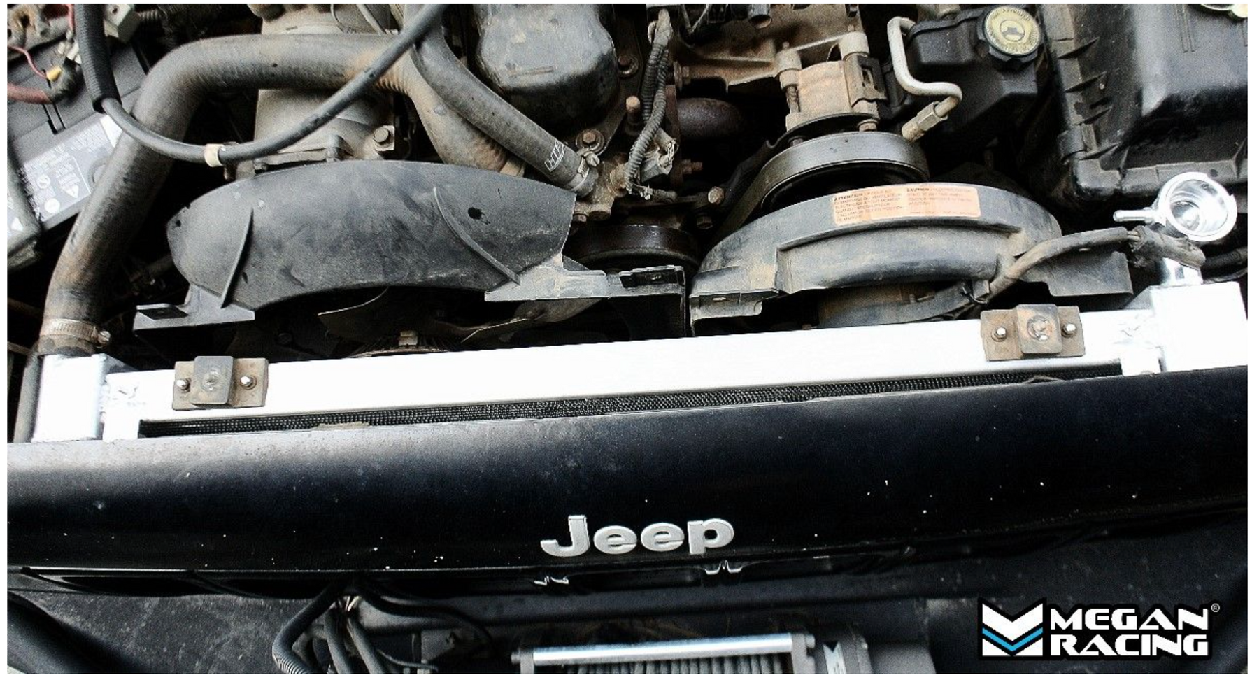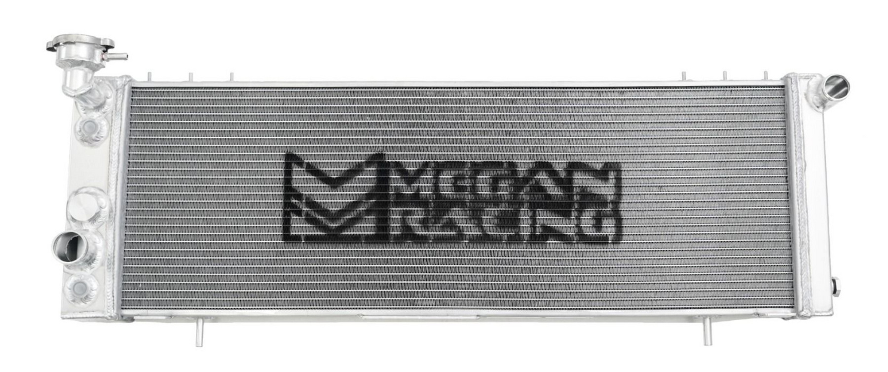 Megan Racing Radiators are comprised completely of aluminum. From the tanks to the primary core. Aluminum tanks are a great upgrade over the plastic usually found on factory radiators which are known to crack and leak especially as they age. The larger heat exchanging core is not only more efficient at transferring heat from the coolant, but also increases total coolant carrying capacity.