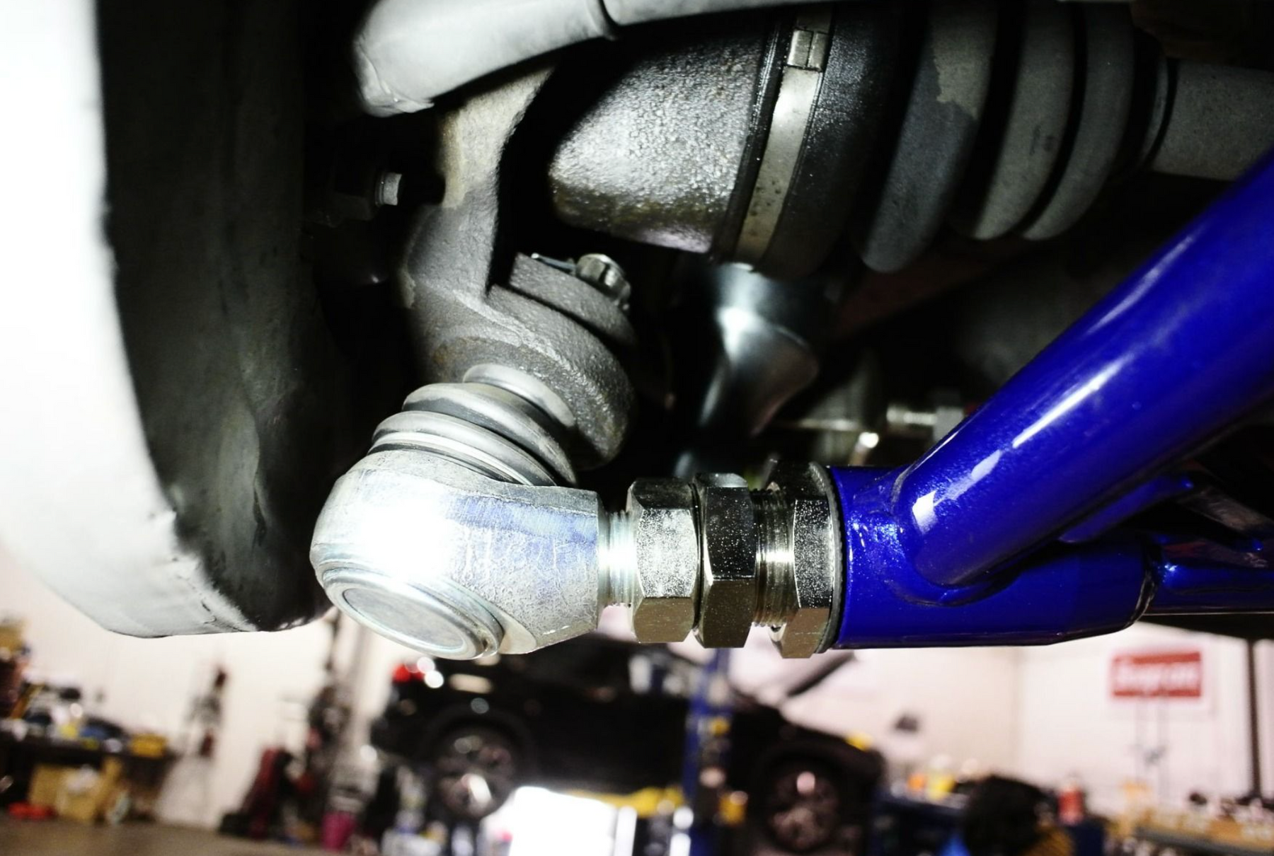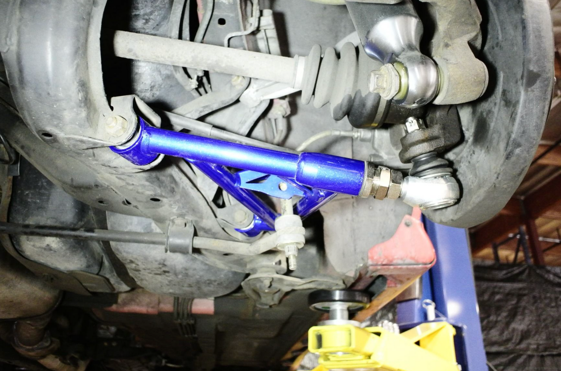 This part completely replaces the rear lower control arm of the Nissan S13 240sx. Our control arm replaces the weak, stamped steel rubber sloppiness with a robust, tubular arm equipped with spherical bushings. Control arm length is adjustable at the balljoint allowing for camber adjustability while the updated, adjustable ball joint style sway bar end-link increases response while maximizing noise insulation.