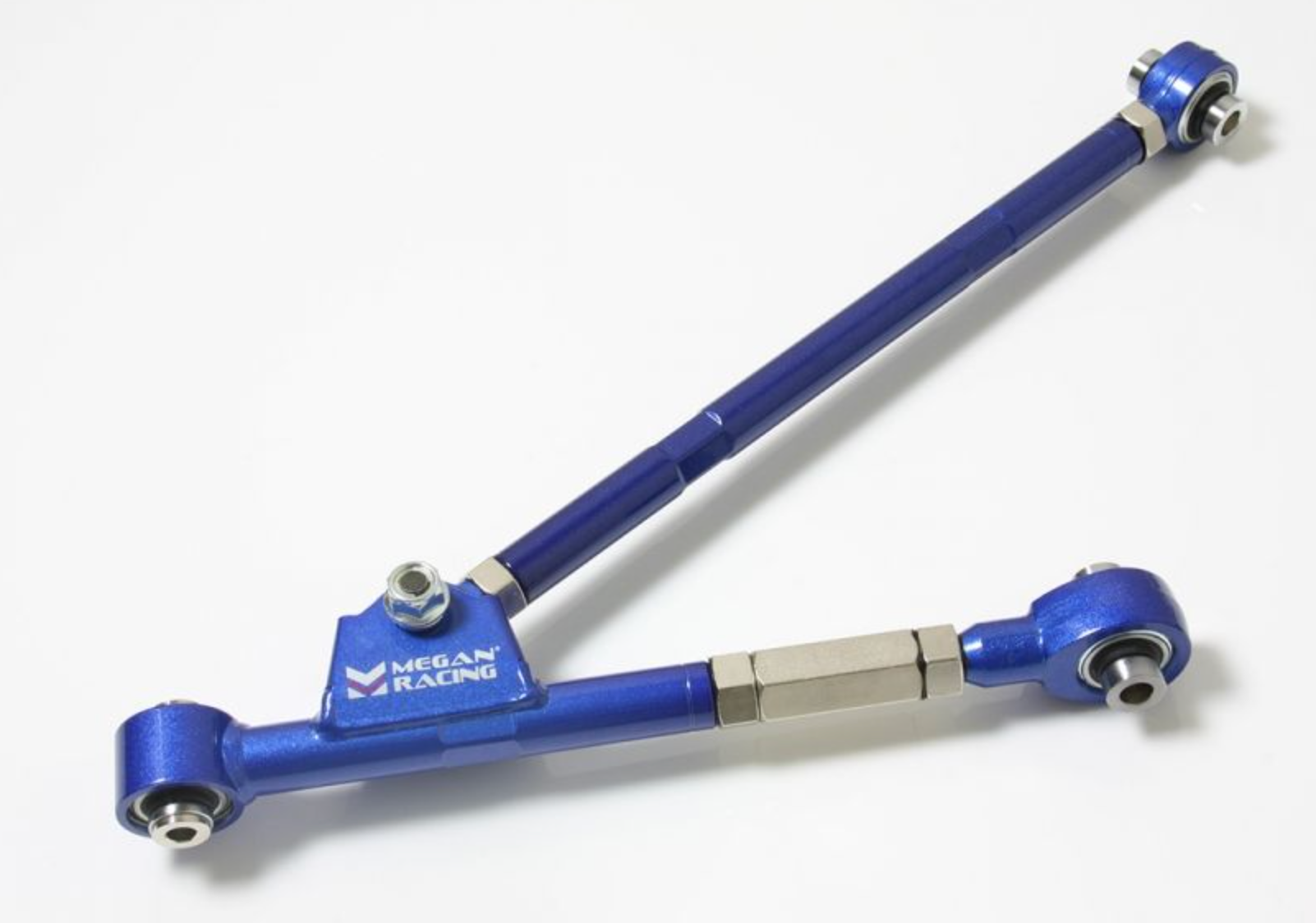 The Mazda RX7 (FD3S) has always been the Mazda's High-Performance machine since it s earlier generations. The Front-Engine Rear-Wheel drive platform handles like a dream while the Powerful light-weight rotary engine screams to the High-RPM s and powers the RX7 with ease. A well-balanced machine that is designed for the street but is formidable at the race track as well was still designed conservatively. But for those who push the limits and take every ounce of potential from their vehicles, the stock power and handling needs the ability to be fine tuned to perfection. Megan Racing has developed our Control Arms for the RX7. Constructed of a Lightweight yet strong Steel-Alloy, they are perfectly suited for competition purposes that can withstand the extremes of track-driving while still being suitable for the daily driver. These camber trailing arms allow the adjustment in the rear wheels which can drastically effect the responsiveness of the car during hard cornering or drifting. The Pillowball ends replace the OEM soft-rubber bushings which absorb too much energy that is then wasted... the result is a more direct feel with no energy lost in the suspension system. Application: - Mazda RX7 FD 93-96 - High-Strength Steel Alloy - Turnbuckle design for easy adjustment - Adjustable Length for camber adjustment for better wheel clearance - Self-Lubricating Pillowball End-Links