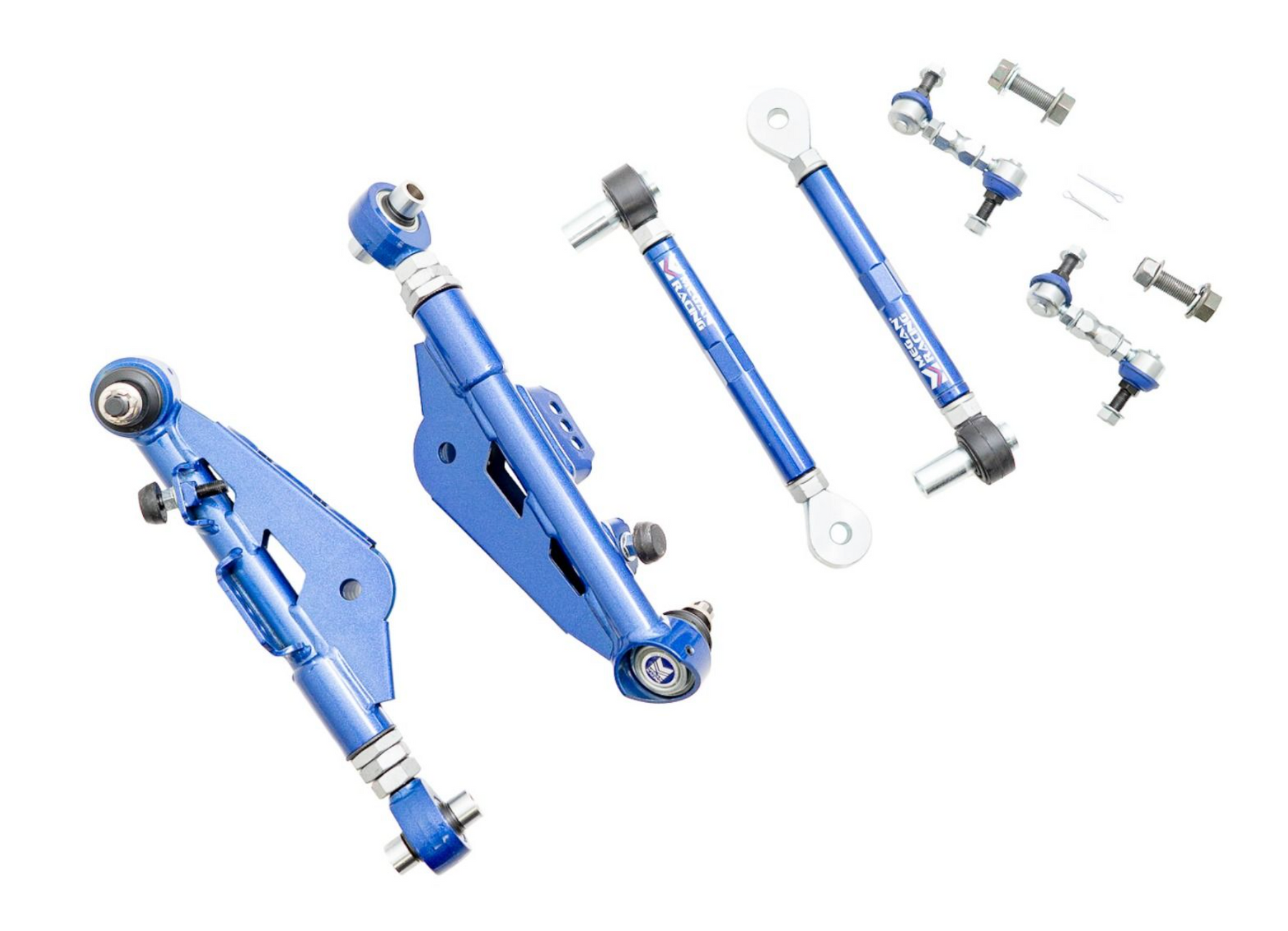 Megan Racing control arms are constructed of high-strength steel offer durability and strength while reducing weight. Spherical bushings eliminates suspension movement over molded rubber bushings while allowing for freedom of movement without binding. All arms are also protected with a 1-year warranty against manufacturer defects.
