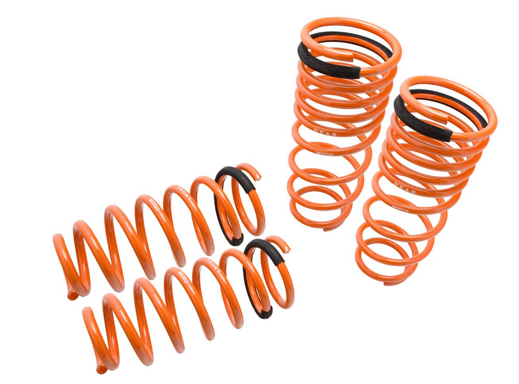 Megan Racing Performance Lowering Springs are constructed of SAE 9254 Cold Wounded Steel, one of the strongest materials available. The high tensile strength and phosphate powder coating delivers outstanding spring rates that are extremely durable and resist premature “sagging”.