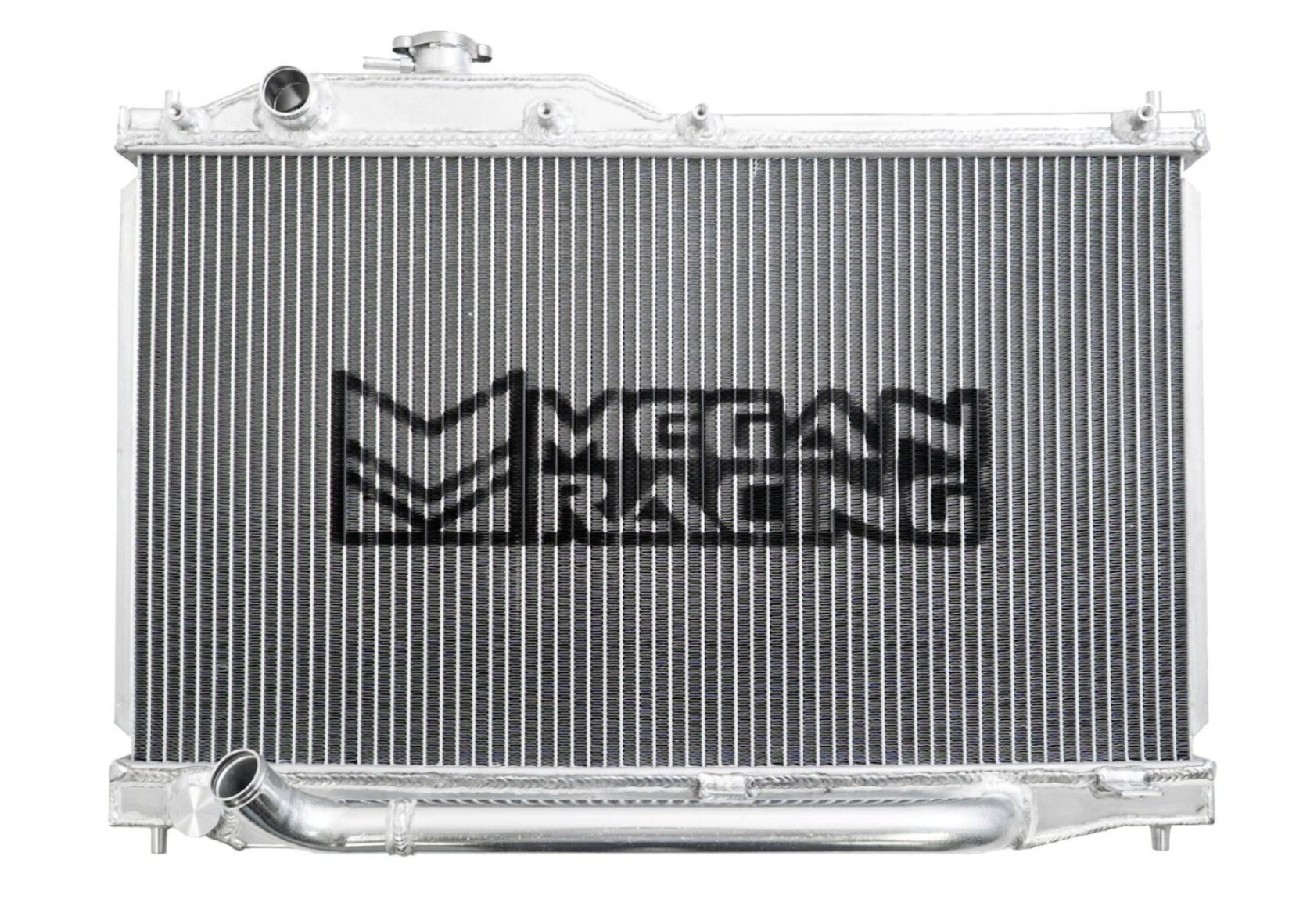 Megan Racing Radiators are comprised completely of aluminum. From the tanks to the primary core. Aluminum tanks are a great upgrade over the plastic usually found on factory radiators which are known to crack and leak especially as they age. The larger heat exchanging core is not only more efficient at transferring heat from the coolant, but also increases total coolant carrying capacity.