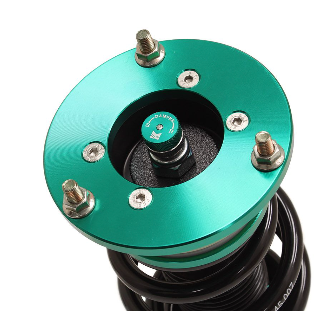 Megan Racing EU Series Suspension Systems are fully adjustable coilover systems which do not break the bank. With it's full length adjustable design, the vehicle's ride height can be adjusted without affecting the shock stroke ensuring a retained ride quality at nearly any height. Monotube internal shock construction separates the oil and hi pressured Nitrogen gas chamber preventing aeration. This allows for immediate shock response and damping consistency. 30-click damping force adjustability will also allow the user to fine tune the ride stiffness and response to his or her preference.