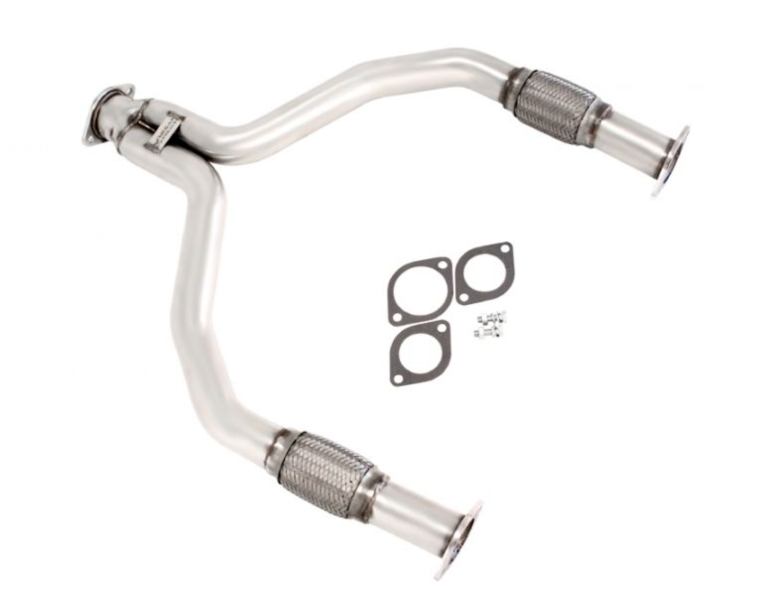 The Y-Pipe features two High-Flow flex pipes to reduce the interior noise resonance without sacrificing performance while the Polished T-304 Stainless Steel construction offers a show-car look and long lasting durability.