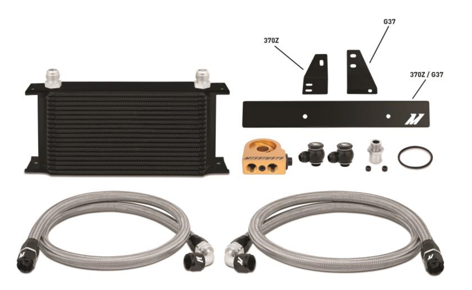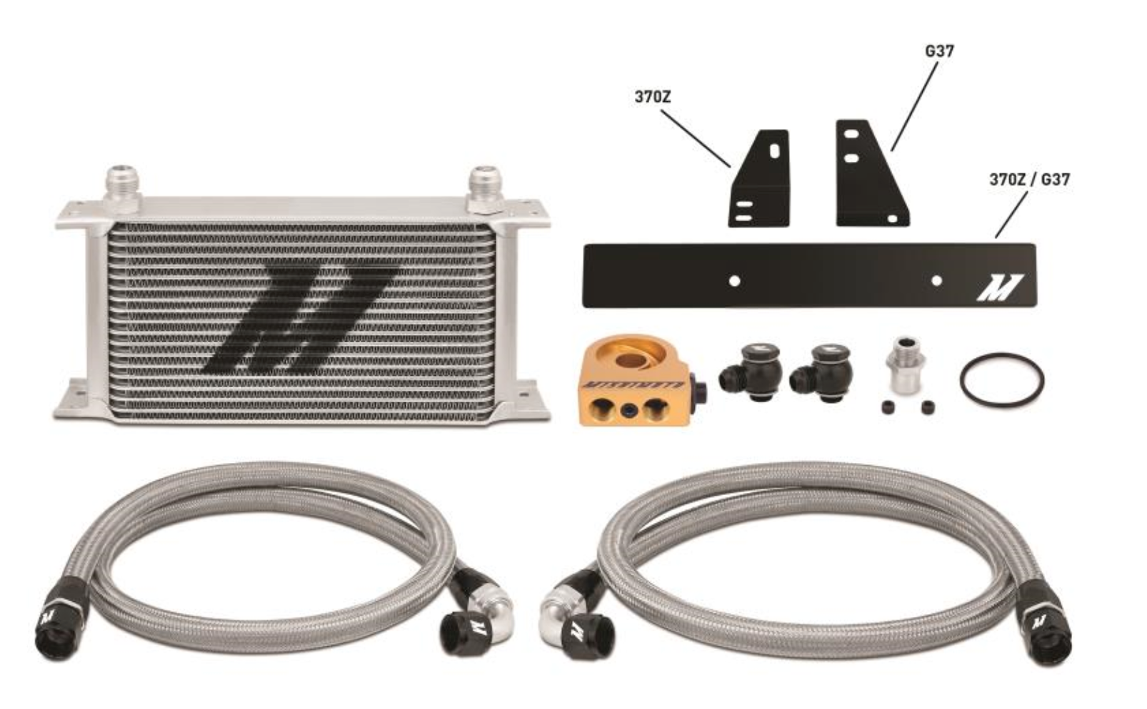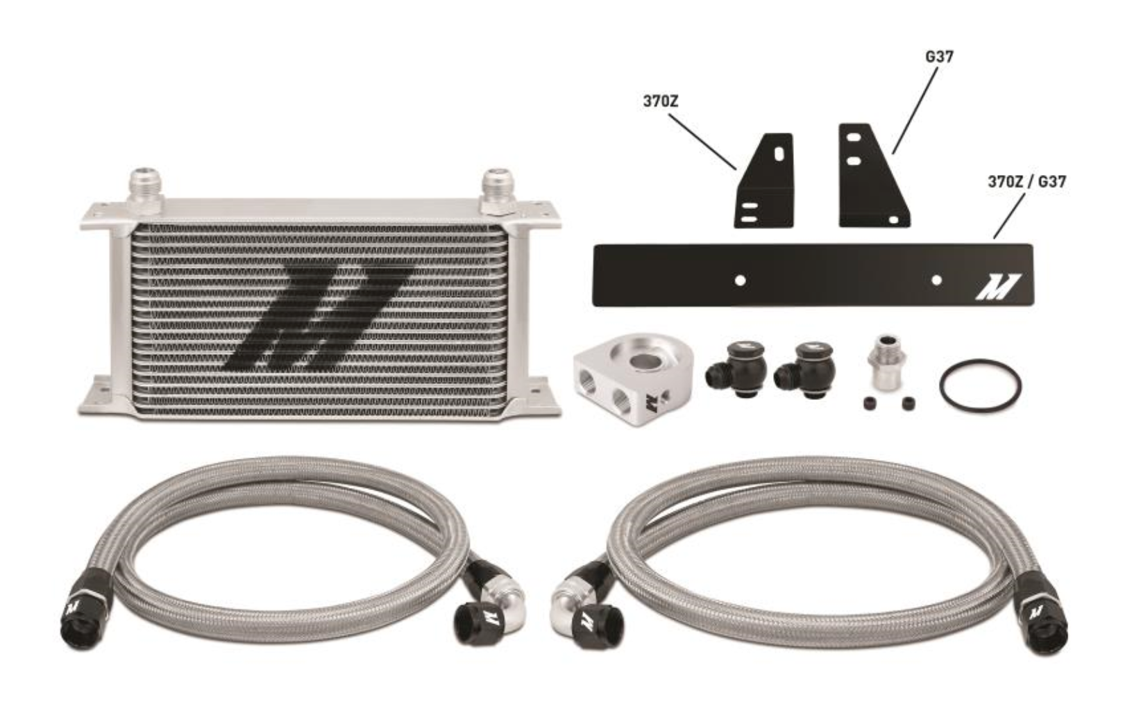 Mishimoto proudly announces the all-new Nissan 370Z, 2009+ / Infiniti G37, 2008+ (Coupe only) Oil Cooler KIt'specially designed for your Nissan 370Z and Infiniti G37, the Mishimoto oil cooler is a direct fit and is beneficial to both manual and automatic applications.Enthusiasts who drive their high-performance cars on or off the track know the importance of keeping their oil temperatures low to prevent damage, or even seizure, of the engine.The Mishimoto Nissan 370Z/Infiniti G37 Oil Cooler Kit comes with a Lifetime Warranty, so you know quality is guaranteed!