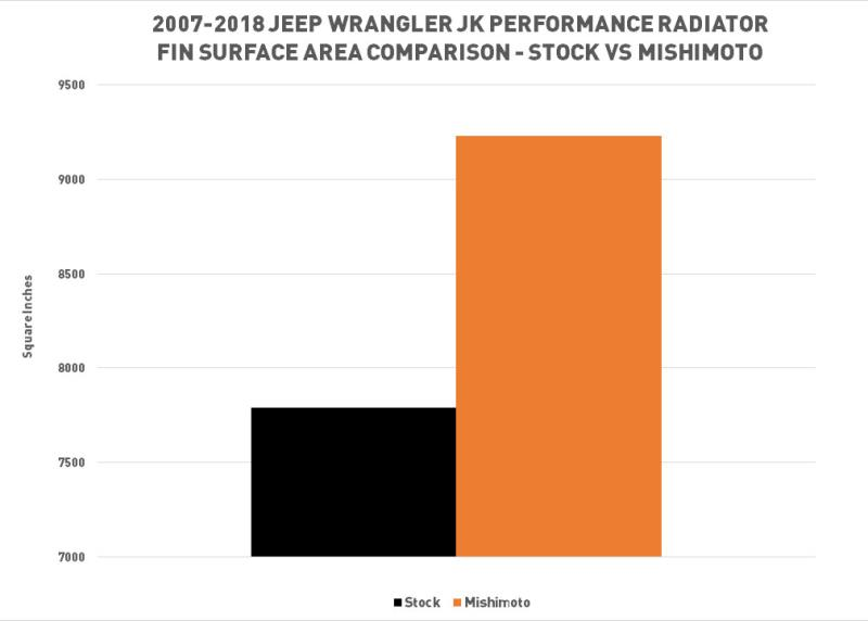 Performance Jeeps deserve performance Jeep parts. That’s why we’ve developed an update for our 2007–2018 Jeep Wrangler JK radiator. Mishimoto’s V1 JK radiator has served as a substantial upgrade over the stock plastic radiator, but after hearing feedback from our customers, we wanted to push the limits even further. With the off-road enthusiast in mind, Mishimoto has developed the V2 2007–2018 Jeep Wrangler JK radiator. This new radiator incorporates several updates that bolster the performance and durability of the Wrangler’s cooling system. As with many of our radiators, this updated radiator provides a substantial size increase over stock. An 18% greater core volume, fin area, and external tube area, along with a 13% increase in coolant capacity, allow MMRAD-WRA-07V2 to keep up with the cooling needs of even the most demanding off-road machine. Of course, reliability is also a major concern for any Wrangler owner. Mishimoto has devoted countless hours of R&D to bring the JK market a stronger, more reliable radiator. Our V2 radiator features extruded, internally strutted tubes to help combat flex within the core. These strutted tubes provide the radiator with greater rigidity and durability, reducing the potential for cracks and leaks. As with all our products, Our V2 Jeep Wrangler JK performance aluminum radiator is backed by Mishimoto’s Lifetime Warranty for unparalleled peace of mind.
