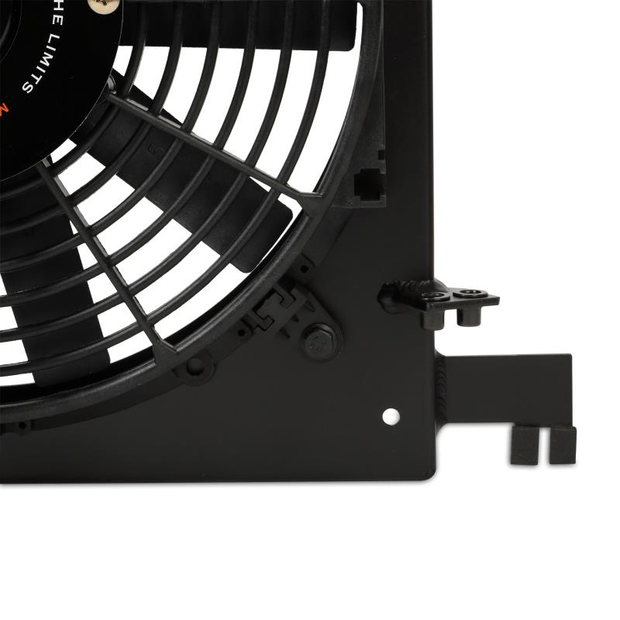 A closer shot of the black Mishimoto BRZ fan shroud.