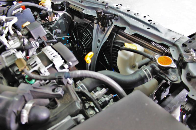 The Mishimoto BRZ fan shroud from the side – we kept the airbox out to better show the product.