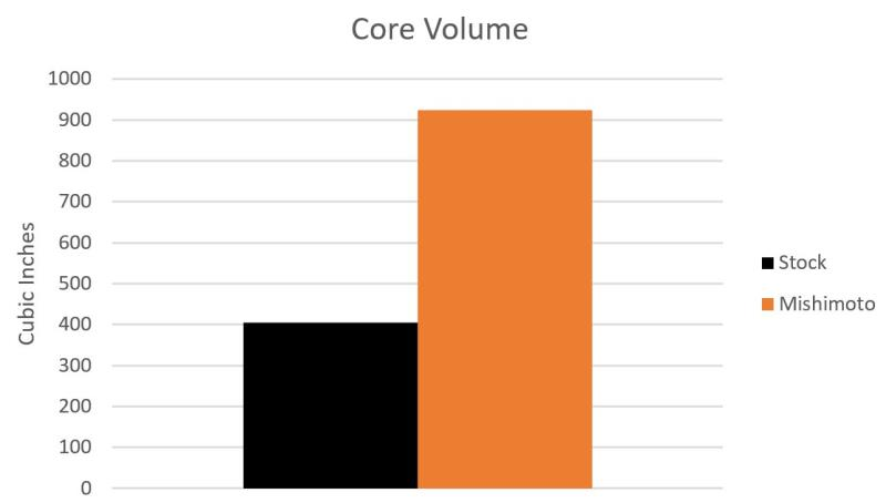 The prototype’s sample showed our other design ideas are suitable. While we plan to have a core volume of 924.59in³, which is an increase of 128% over stock, we intend to keep the factory intercooler shrouding intact as it will properly direct airflow to our intercooler. One thing that will have to be axed, though, is the active splitters that come with the car. There simply isn’t enough room to keep them with our much thicker core. The splitters are an interesting feature that comes with this car from factory, because they open up when air temperatures get too high and allows more airflow. However, now that the front face of our core is much closer to the front grill, plenty of constant airflow is better for performance over anything impeding that. After all, this is a performance upgrade. With a 32% increase in external fin surface area, we want as much air slamming the front of this intercooler as possible. On the bright side, it will ease and simplify the installation!