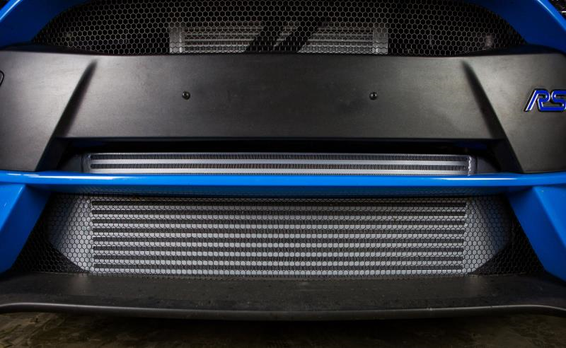 Say hello to our intercooler for the 2016–2018 Ford Focus RS! Whether you are a track junkie, occasionally taking your RS for some spirited driving, or making your RS a car to steal the show, this intercooler will suit your needs. Our intercooler has been beefed up with a 36% increase in core volume and a 214% increase in external fin surface area, which means increased air-cooling efficiency for your RS. Our core reduces air outlet temperature by almost 40% while minimizing the inlet/outlet pressure drop across the core, and provides gains of 7hp and 8ft-lbs! The hefty, direct-fit, bar-and-plate core is durable enough to withstand any type of abuse you throw at it, while improving the heat transfer process both at idle and cruising speeds.