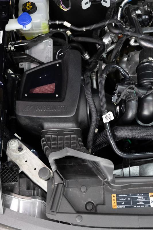 The Mishimoto 2021+ Ford Bronco 2.3L EcoBoost performance intake is constructed from rotational molded cross-linked polyethylene. This ultra-strong material allows us to create smooth airflow while effectively keeping engine bay heat out of your intake air. This construction, combined with the 4.5-in high-flow filter, results in an intake that is 29% less restrictive than stock. To keep the intake flowing through any terrain, we’ve also maintained the stock fresh air inlet, which features a dust trap to protect the air filter from dust and debris.