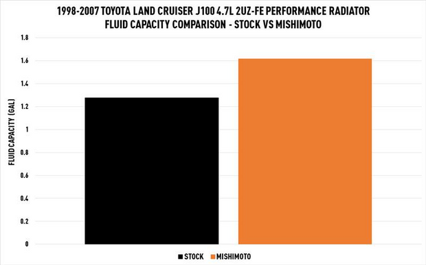The Mishimoto 1998–2007 Toyota Land Cruiser J100 Performance Aluminum Radiator is an ideal upgrade for the brittle stock radiator. Our radiator boasts a 19% greater core volume and 26.5% greater coolant capacity to improve cooling efficiency. The Mishimoto Toyota Land Cruiser J100 radiator features durable, aircraft-quality, aluminum end tanks that are precision TIG-welded to the 56mm-thick core for superior durability.