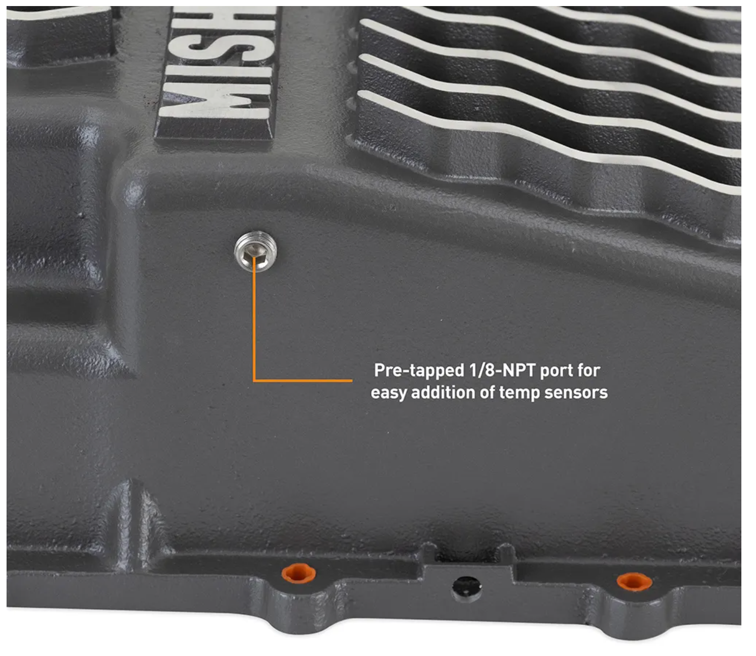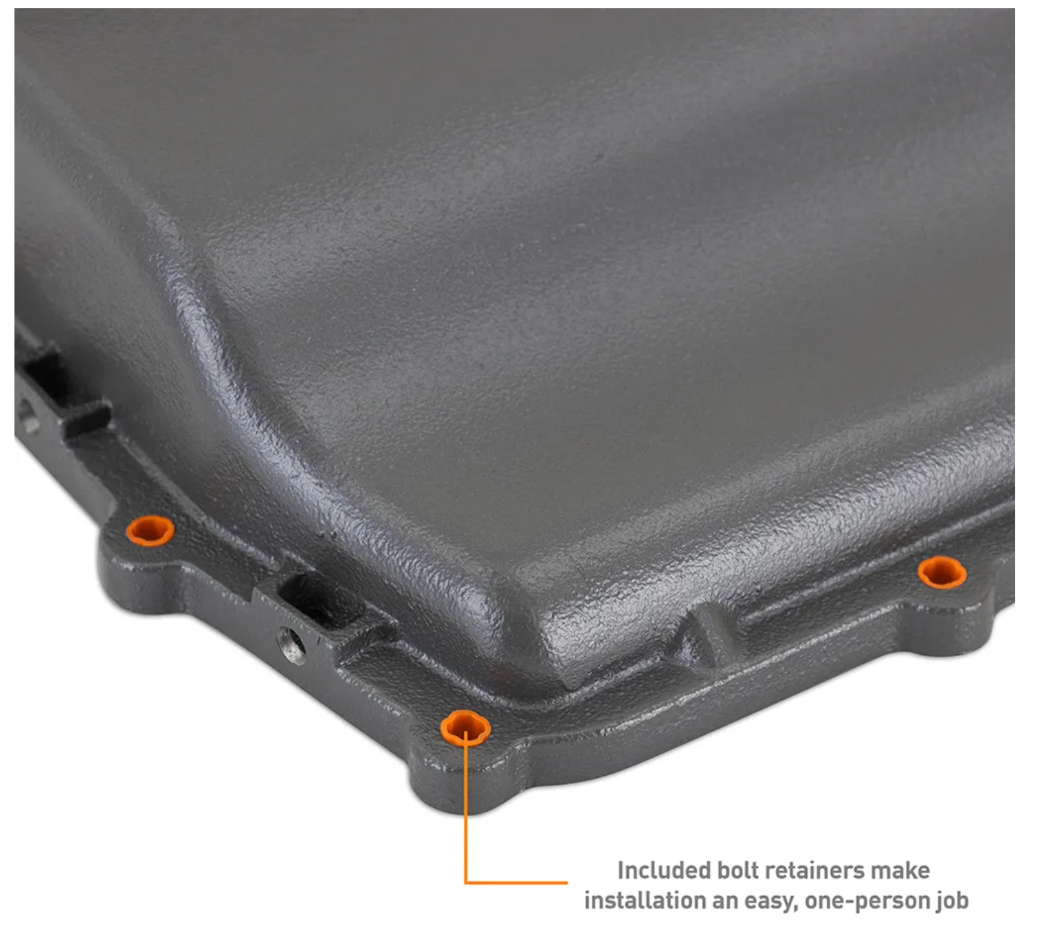 Fed up with the frustration of trying to hold up a transmission pan with one hand while threading the fasteners in with the other? Mishimoto has you covered with pre-installed bolt retainers that hold the fasteners in the pan, allowing you to easily thread the bolts without dropping them on the ground, your head, or worse, that pan of nasty transmission fluid you just drained. Additionally, our pan comes equipped with a magnetic drain plug for easy draining and a 1/8-inch NPT port and plug for temperature sensors to make servicing your transmission and monitoring temperatures a breeze.