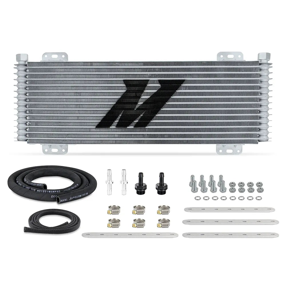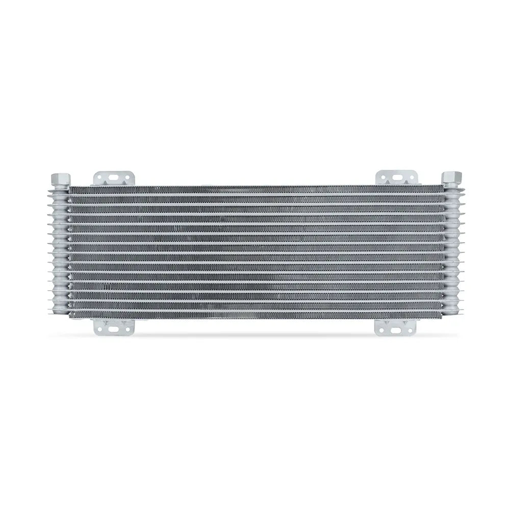 Keeping transmission fluid temperatures in check is key to extending the life of your transmission. High fluid temperatures cause reduced lubrication, which can damage seals, clutches, and bearings. Mishimoto has a solution with our highly efficient universal 13-row stacked-plate transmission cooler kit. This universal kit applies to any vehicle needing an ancillary cooler to assist in hot climates, towing, or extreme driving conditions. Our heat exchanger features a 40,000 GVW rating, making it ideal for heavy-duty applications. Within this transmission cooler kit, we include the necessary components for a typical installation. The included ¾-in-16 to 3/8-in hose barb adapter fittings feature an integrated O-ring for leak-free operation. Fifty feet of durable SAE J1532 transmission cooler hose is provided to route fluid to and from the transmission. SAE J1532 hose is explicitly designed for transmission fluids and features a spiral polyester reinforcement for increased pressure tolerance. Because routing of fluid lines is often around sharp objects or through tight passageways, we include a durable hose protection sleeve that prevents damage from abrasion. In addition, this transmission cooler includes a durable, corrosion-resistant powder-coated finish. We've included high-quality stainless-steel worm-gear clamps and 3/8-in hose barb unions for mating the hose and fittings. Rounding out our Universal 13-row Stacked Plate Transmission Cooler kit is a set of 4 universal mounting brackets and associated hardware, making installation a breeze. As with all our products, this universal transmission cooler includes the signature Mishimoto Lifetime Warranty.