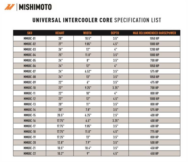 Introducing Mishimoto’s lineup of Universal Race Intercooler Cores. Whether you’re looking for an intercooler to fit into a tight space or completing the build on your track toy, Mishimoto has the intercooler core for you.