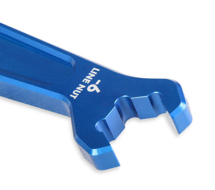The NOS Bottle Nut Wrench combines the ability to service 1-1/4" (-12AN) bottle nuts and 11/16" (-6AN) supply lines in one handy tool. Precision machined from 7075 aluminum with a blue anodize and laser etched for great looks and easy size identification.