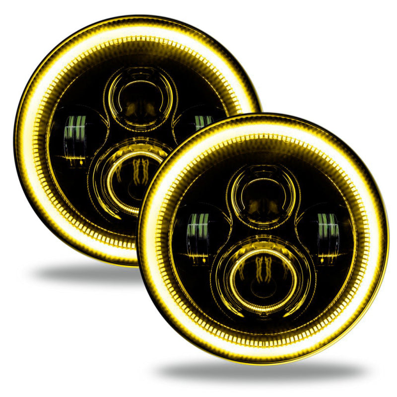 Complete Package for adding High-Performance 7" LED Headlights to your Wrangler JL/Gladiator JT without any fabrication or cutting your factory wiring. This complete Plug-&-Play kit also features Vertical and Horizontal headlight adjustment so you can put the light on the road (where you need it) and not blind oncoming traffic. The Ultimate 7" LED replacement headlight option for the Wrangler JL/Gladiator JT. This rugged solid-state LED design is perfect for the Jeep owner looking for high-quality lighting for better night time visibility without overpaying. Installation is very easy with the included JL/JT-specific “Plug and Play” connectors. You can even choose optional colored Halos for even more customization! Note: DRL wire cannot be used as a power source - Tapping into Park Lights will give manual control over LED accessory during daytime driving - LED accessory will turn on automatically in night mode when switch is set to AUTO - For full automatic control over the LED accessory use fuse F52 in the engine compartment fuse panel. The new ORACLE Lighting Dynamic ColorSHIFT Halos feature individually addressable LEDs which pack a ton of unique features.. The Dynamic features allow the user to run multiple moving color patterns through the LEDs, creating a vivid eye-catching lighting effect.Through the App you can easily make standard white colors as well as any static colors using the LED color wheel. What makes these DYNAMIC halos more unique is that you can also display a variety of moving patterns within the app. With over 200 different patterns there is something to fit every color scheme you can imagine!