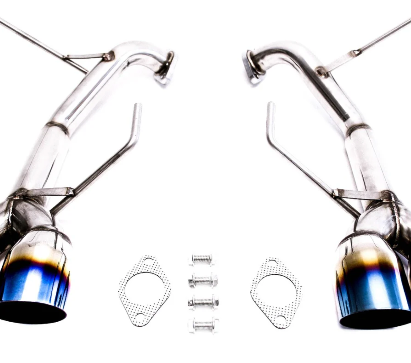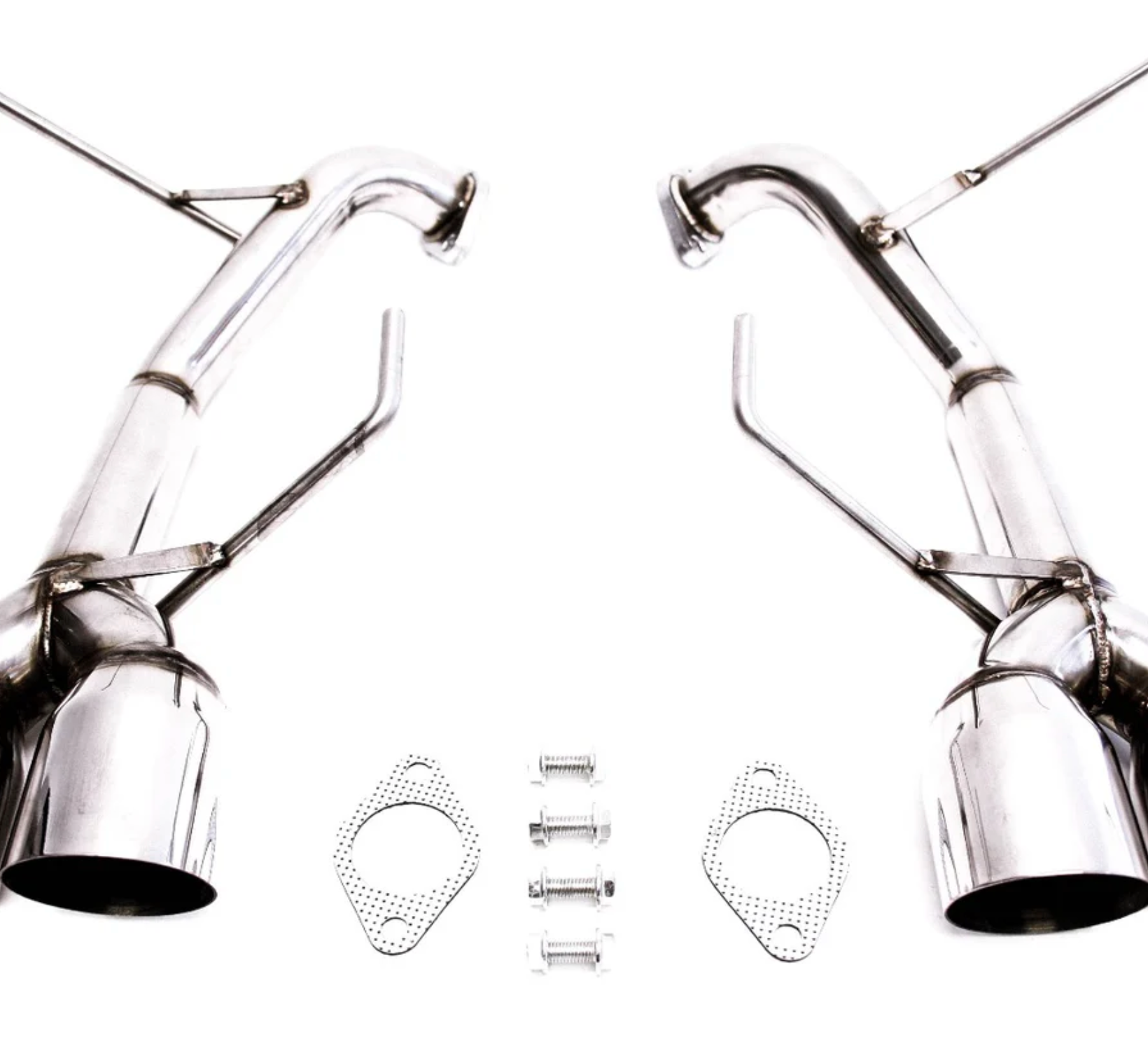 PLM Private label Mfg. Axle-back exhaust, also known as Muffler Bypass, Muffler Deletes, or Track Pipes are made of TIG welded stainless steel, lightweight compares to factory mufflers, and sounds amazing!