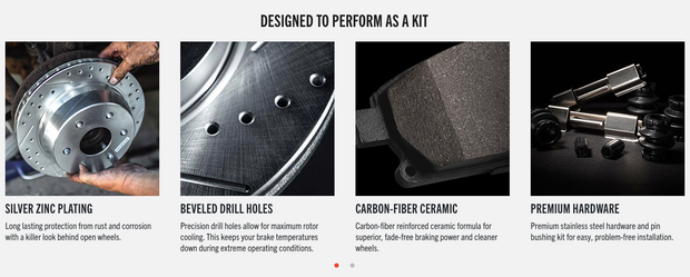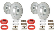 The Z26 Street Warrior Brake Upgrade Kit is recommended for high performance, high horsepower muscle and modified cars. Including pads, rotors, powder coated calipers, and stainless steel hardware, this kit comes with everything you need for easy installation. Our Drilled & Slotted rotors and Carbon-Fiber Ceramic pads combine to provide shorter stops under the most demanding conditions. The PowerStop Z26 Street Warrior Upgrade Brake Kit is the only bolt-on upgrade that delivers more than just the braking power you need to rein in all those ponies, though. With our low dust and noise formula, you’ll spend less time cleaning those wheels and more time enjoying what matters most – the drive.