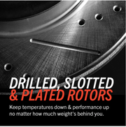 Includes rotors that are cross-drilled and slotted for more effective cooling under heavy use